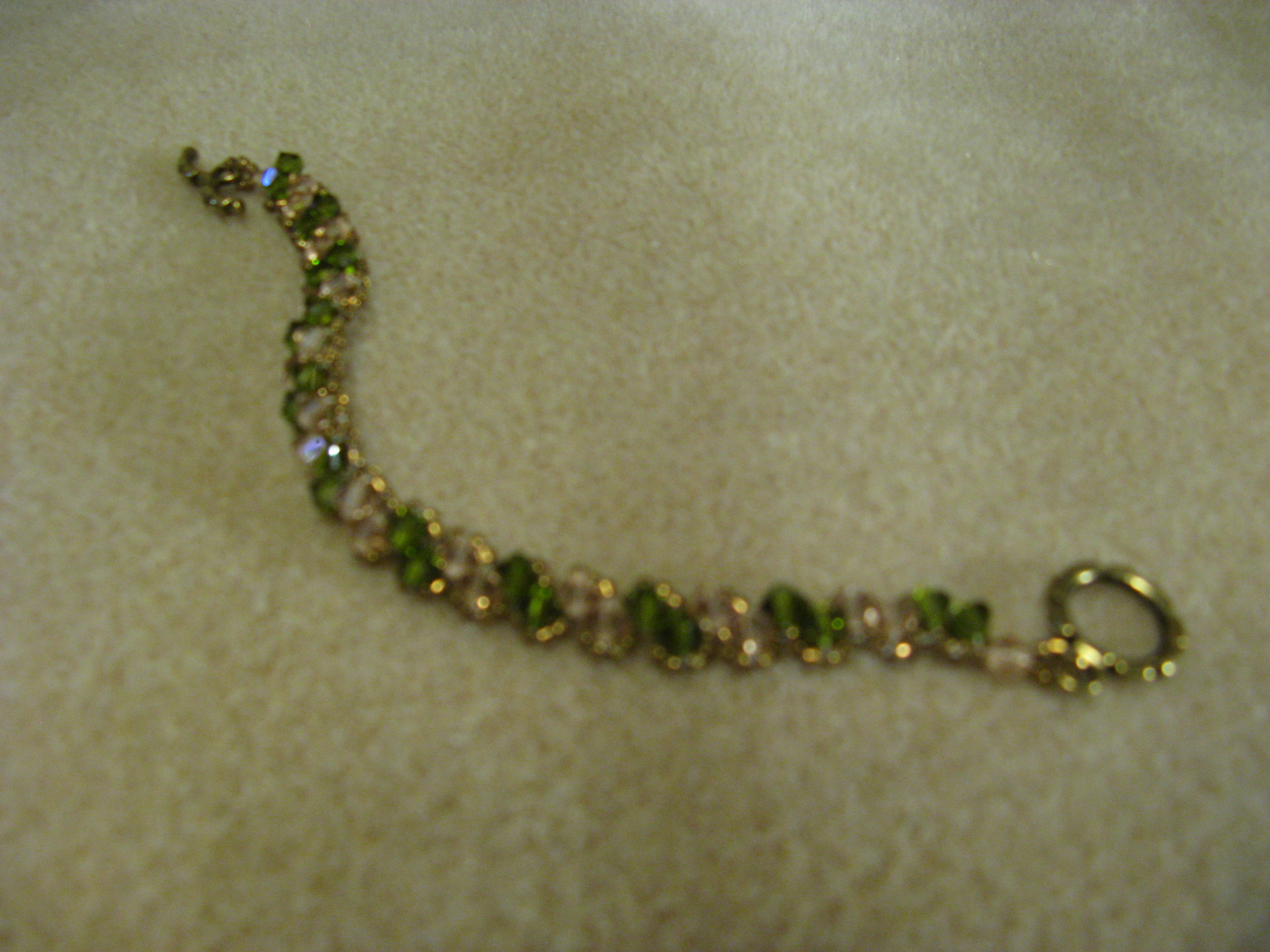 To create the bracelets for both sets and the necklace for the O&VR set I used the Right Angle Weave technique. I’ll be honest; when I first learned how to do Right Angle Weave I didn’t like it. The finished product was nice, but, I had a hard time just getting into the flow of doing it. I would always forget my place and end up with my thread coming out of the wrong bead. Thankfully working on these bracelets and necklace I didn’t have any issues like those. The one problem I did have was that my thread broke a few times while working on the necklace. I used 6lb Fireline thread which is strong enough but I think that the Right Angle Weave technique weakens the thread after being passed through the beads and crystals so many times. I tried to minimize the problem by not pulling the thread too tight as I added on each new crystal.