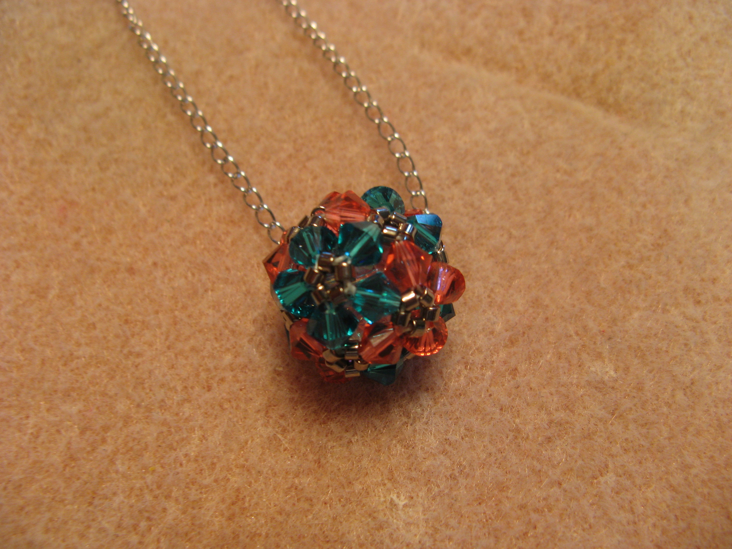 And finally, instead of creating a Right Angle Weave necklace for the BZ&P set I opted to make a beaded ball using the Cross-Weave technique. Which I learned is actually a form of the Right Angle Weave using two needles instead of one. This is actually the first bead weaving project that I learned.