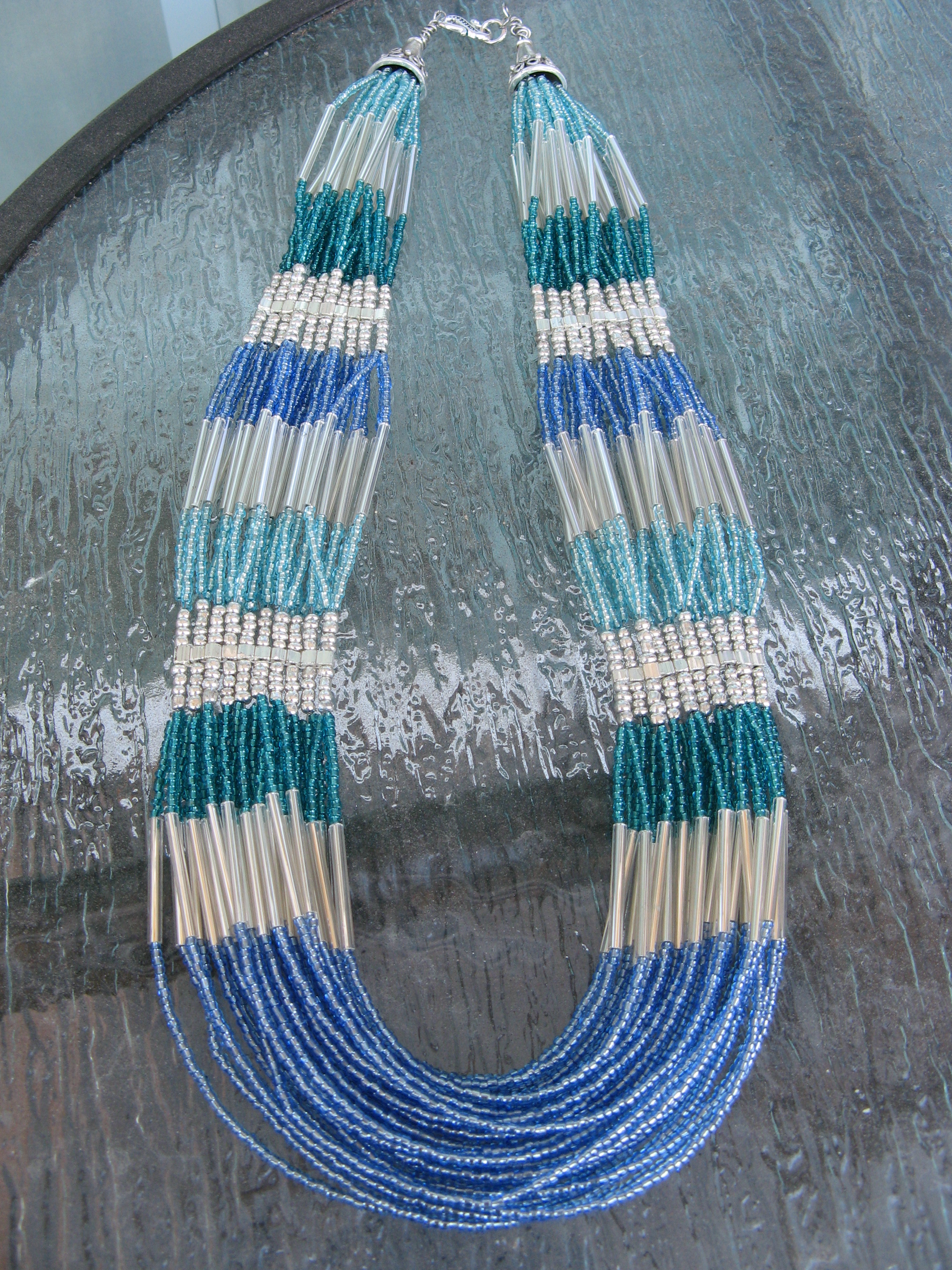 When I saw a necklace like this one while flipping through a magazine last year I was determined to make something similar. It took some searching to find the exact components I needed to complete it, 30 strands of beading wire and a lot of counting, but, it was all worth it. This is by far my favorite necklace from this group.