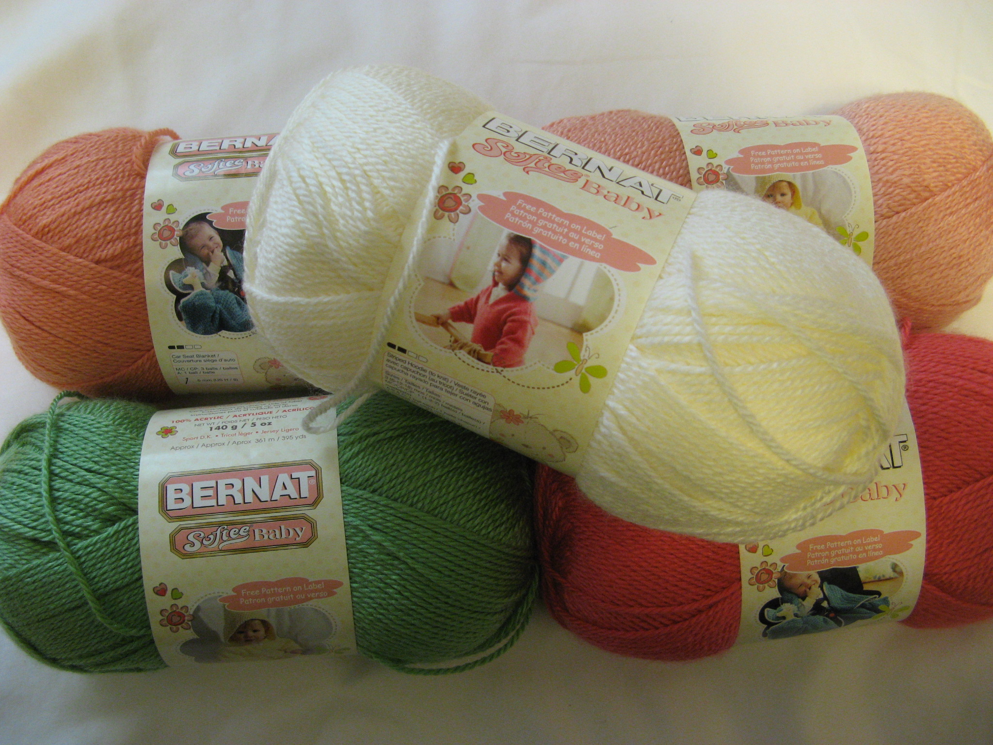 I used the crochet pattern Beginner Crochet Baby Afghan from the Lion Brand wesbsite as a basis for the blanket but made a few tweaks. Instead of using the yarn they suggested – Lion Brand Jamie Yarn – I opted to use Bernat Softee Baby Yarn which was the same weight as the Jamie yarn and available at my local craft store. Also, instead of each square being 13 rows I opted to make them 17 rows.
