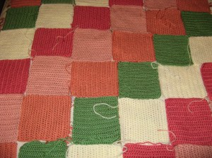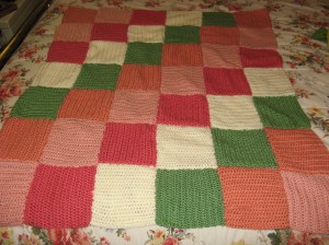 I recently finished a baby blanket for a friend of mine whose baby girl is due later this summer. While I started back in April, which did give me plenty of time to finish it before her baby shower, I of course got sidetracked while working on it and was working feverishly the week before her shower to finish it up. I basically had all of the squares done; I just needed to stitch them all together.