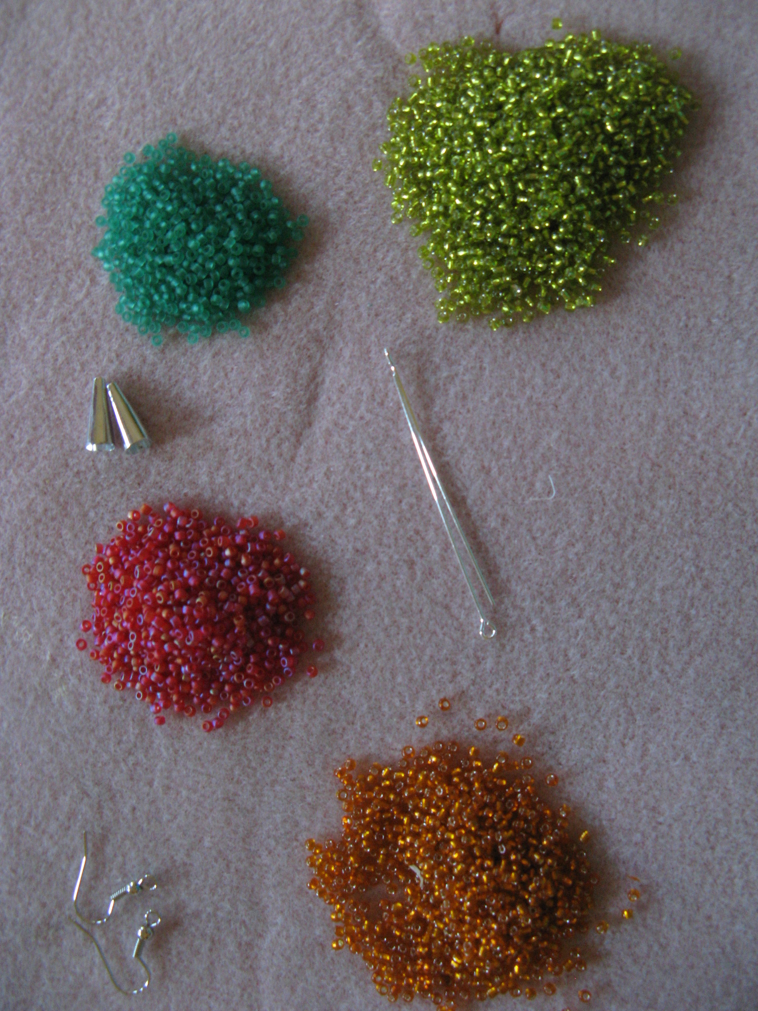 I came across an earring pattern – known as the Taos Earrings – while searching through the different projects available on the Artbeads website. They looked simple to make and offered the option of being able to combine different colors which meant they would be extremely versatile to wear.