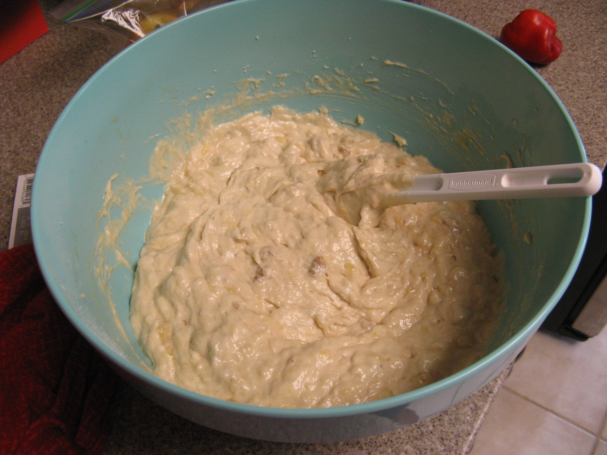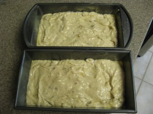 But once I added in the mashed up bananas my batter turned into something that was easily pourable into my prepared pans.