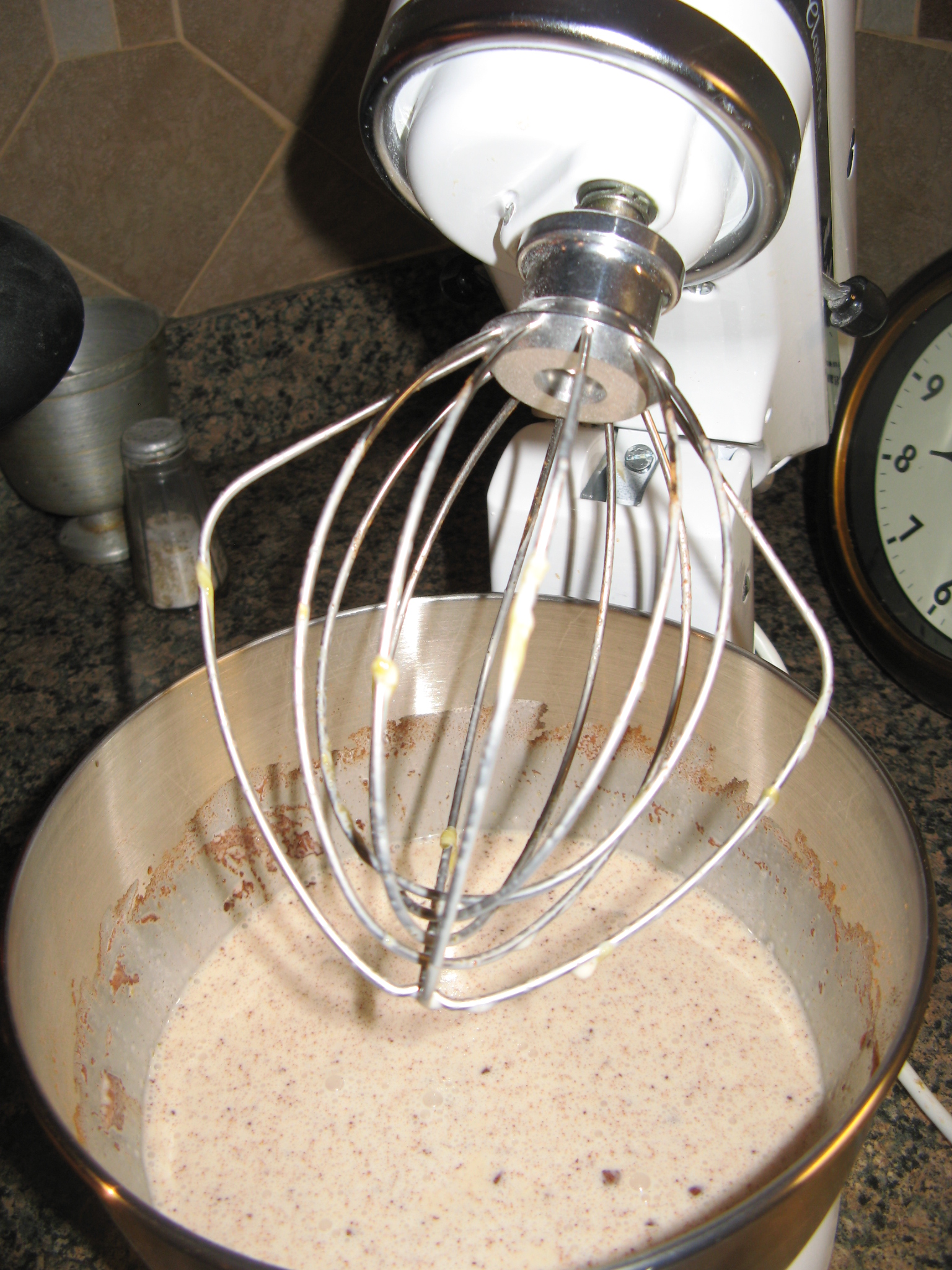 I then added in the heavy whipping cream, cinnamon, vanilla extract and the raisins along with the rum they were soaking in.