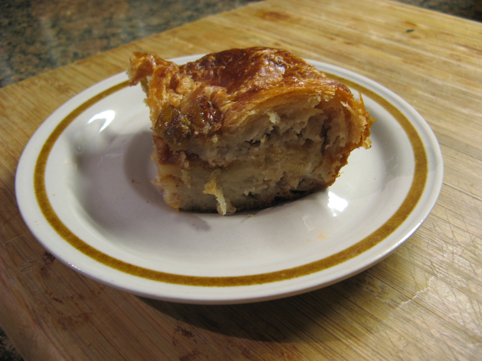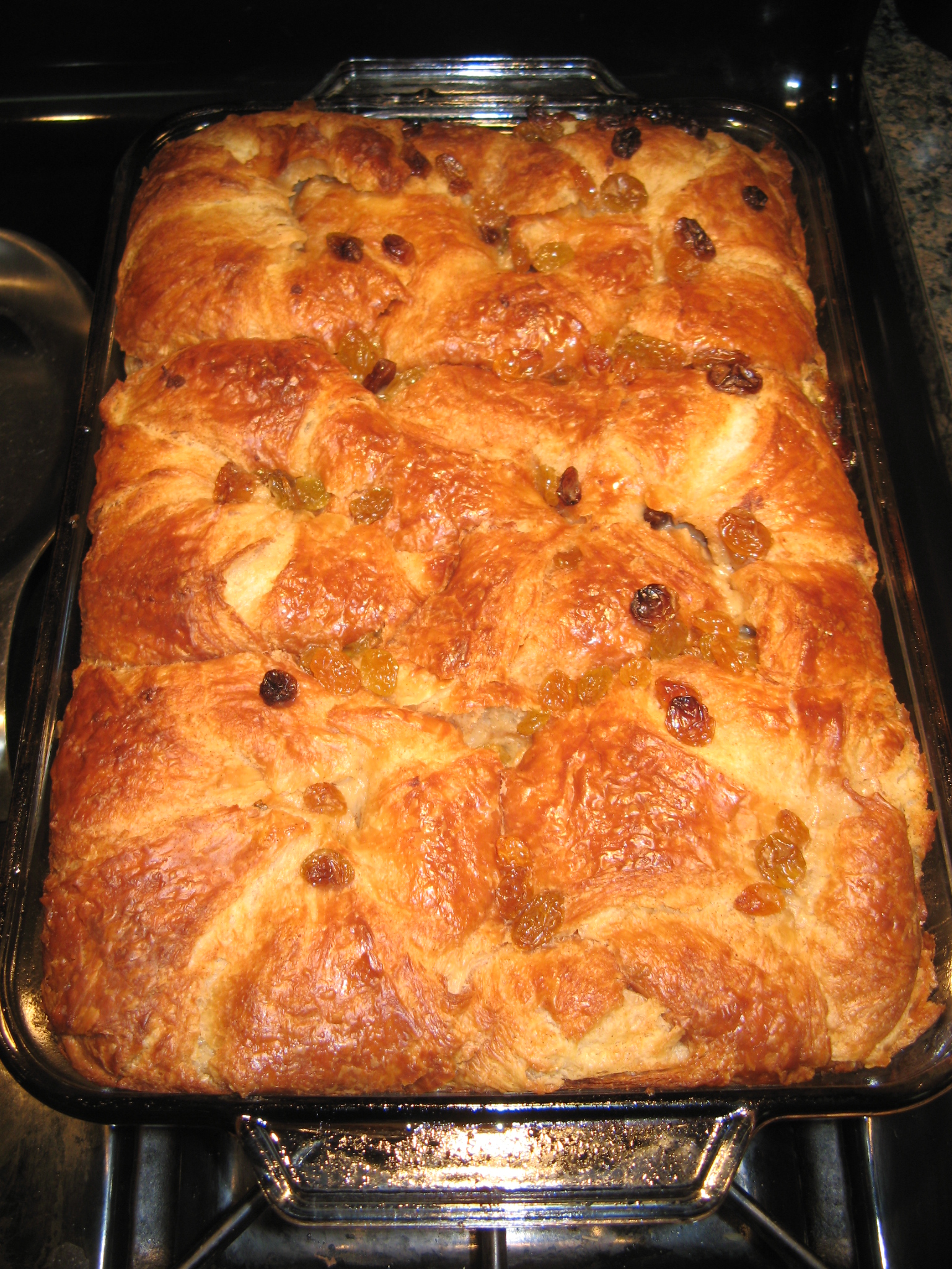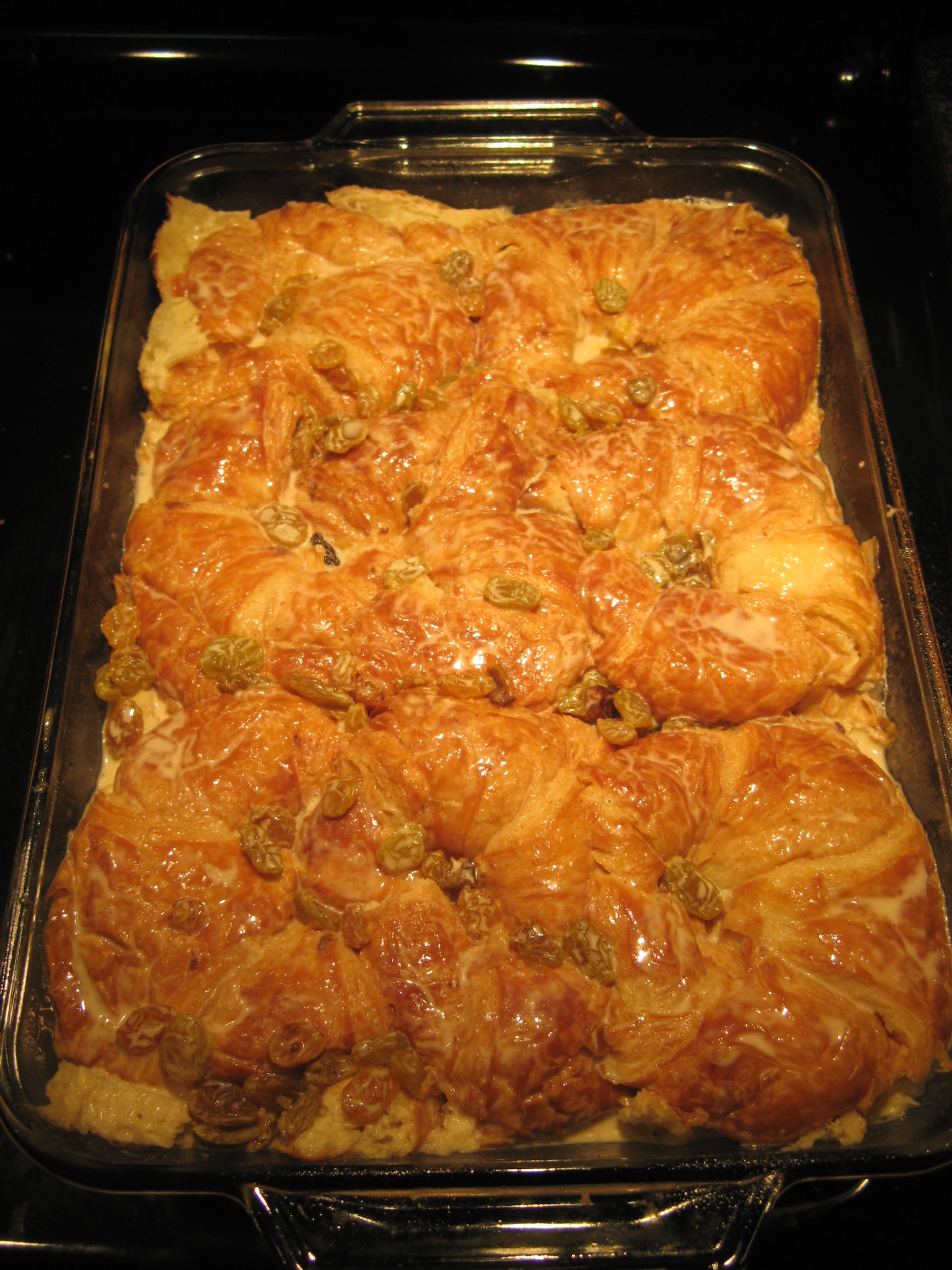 I am sure I will be making this again, but, with a few changes. I think that instead of throwing all of the raisins in with the mixture I will layer some of them between the torn pieces of croissants and the top halves. Also, I think I will start off by baking it covered for 45 minutes and then removing the foil for the final 15 minutes.