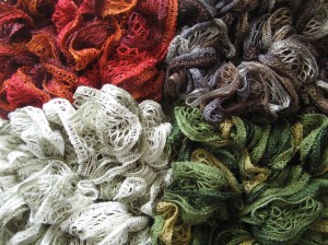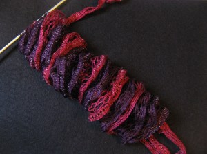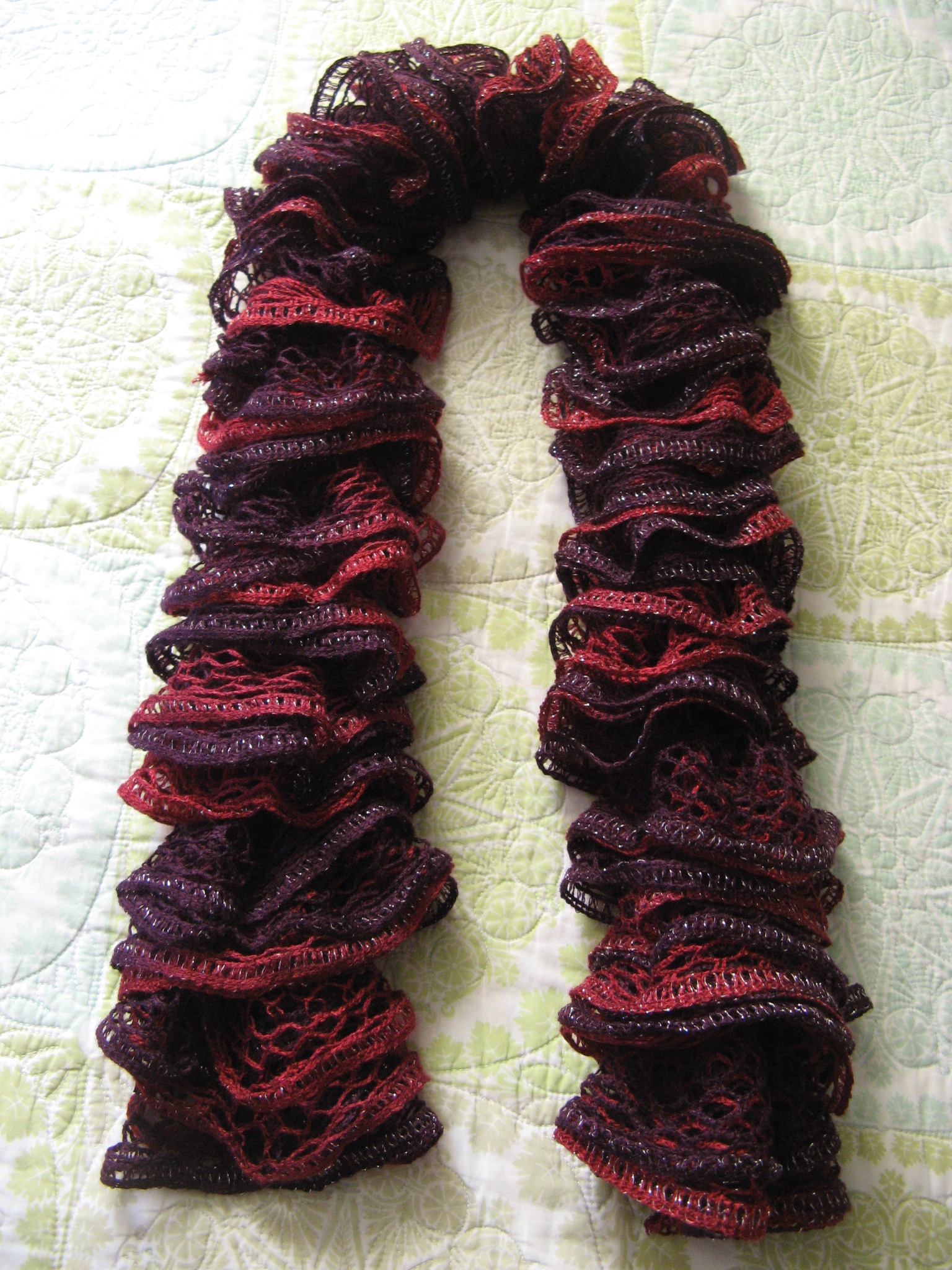 I came across Red Heart’s Boutique Sashay yarn at my local Michael’s store and thought it looked pretty cool, but, I had no idea how to use it – it’s a fishnet yarn that creates ruffles as you knit or crochet with it. So, after watching a few video tutorials and finding a pattern for a scarf I was ready to try out this new yarn.