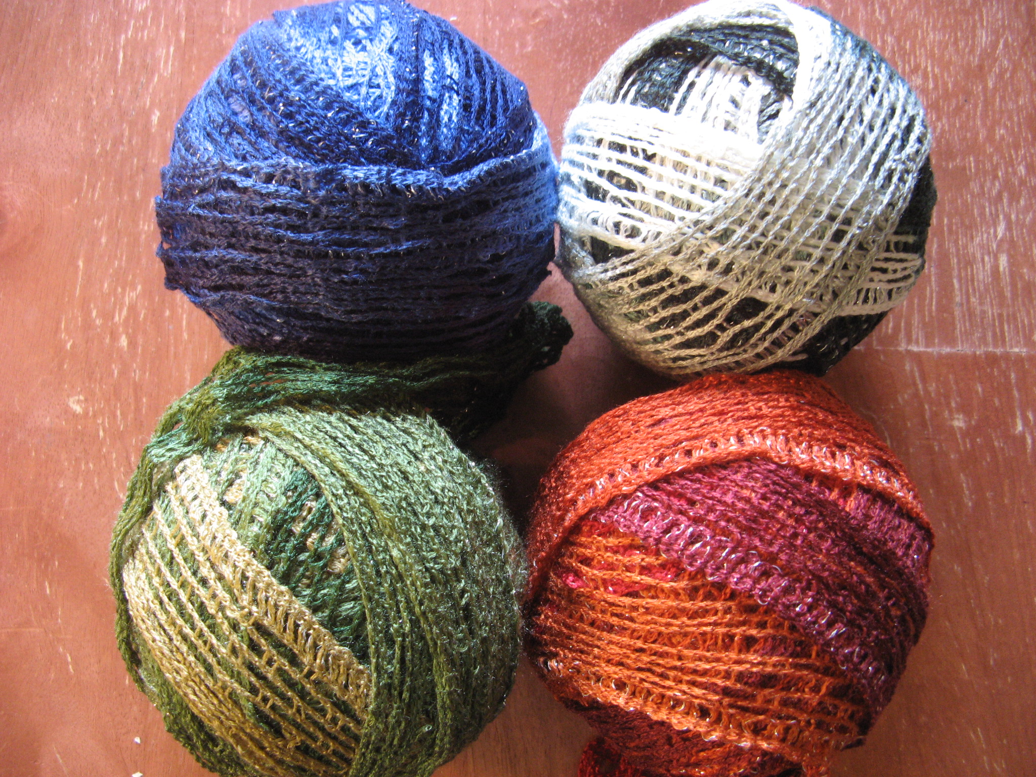 And in turn she showed hers to someone and they requested I make some for them to give as Christmas gifts. So I have a few colors all wound up and ready to be knitted.