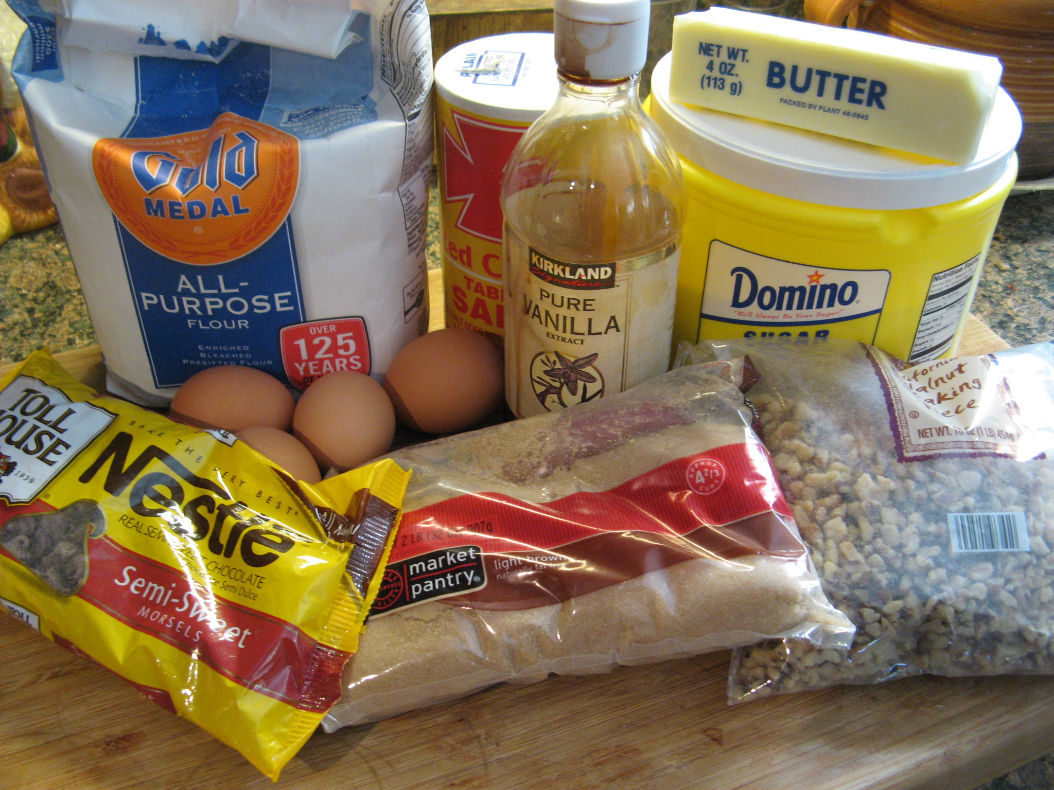 The ingredients were quite basic: Semi-sweet chocolate chips, butter, light brown sugar, granulated sugar, eggs, vanilla extract, flour and salt. And since I like some texture to my brownies I added in walnuts. The last time I made brownies I actually used cocoa powder so I was taken aback by using chocolate chips instead. Luckily I buy them whenever they’re on sale and store them in my refrigerator because you never know what may come up… like a snowstorm!
