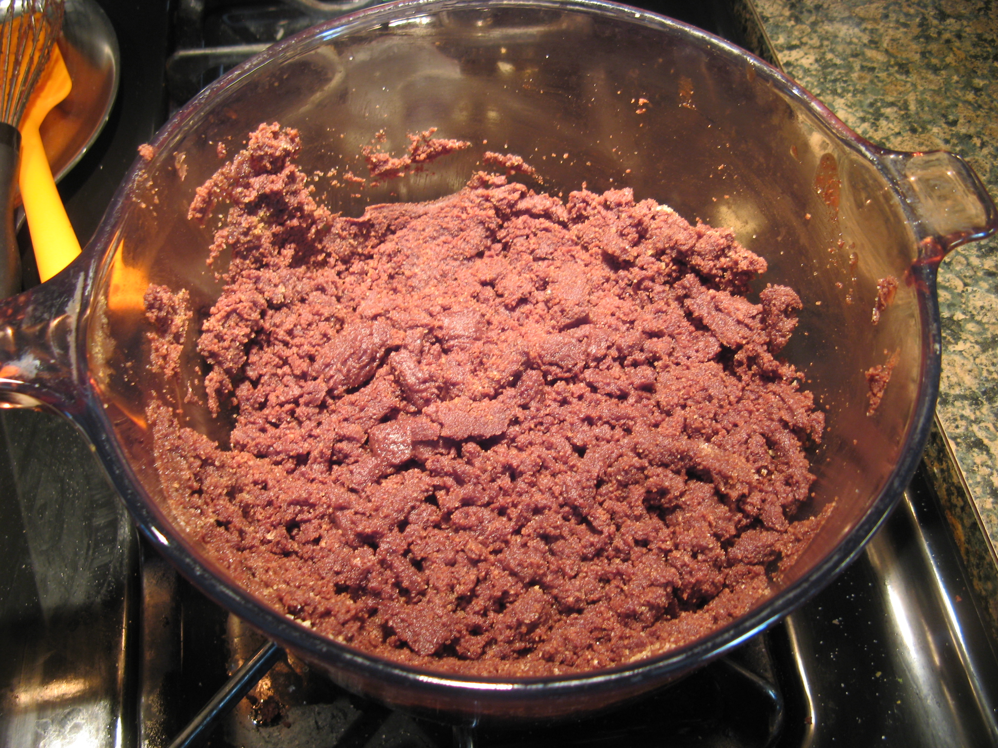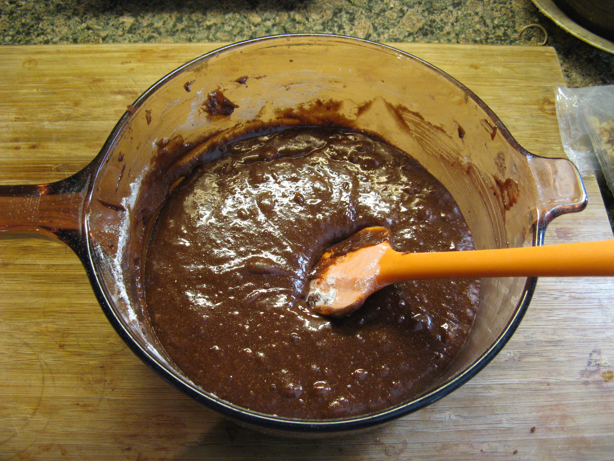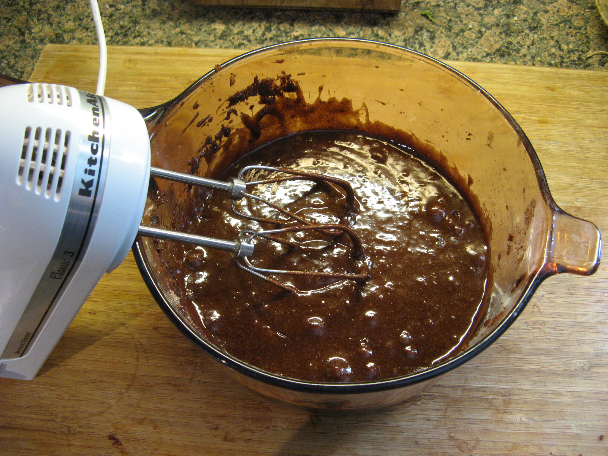 After letting it cool for a few minutes I whisked in four eggs one at a time and then the vanilla extract. I was actually going to do this by hand but immediately changed my mind and whipped out my hand mixer instead. My arm already had a good workout from clearing the snow.