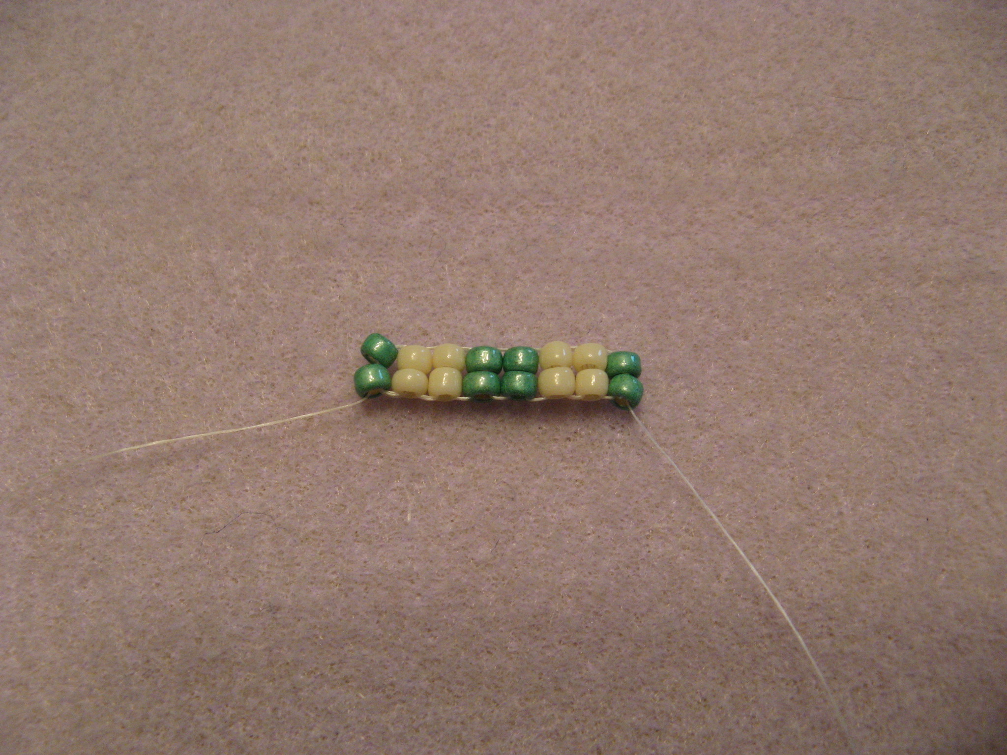 I started off by working in ladder stitch to create the first two rows of the bracelet.