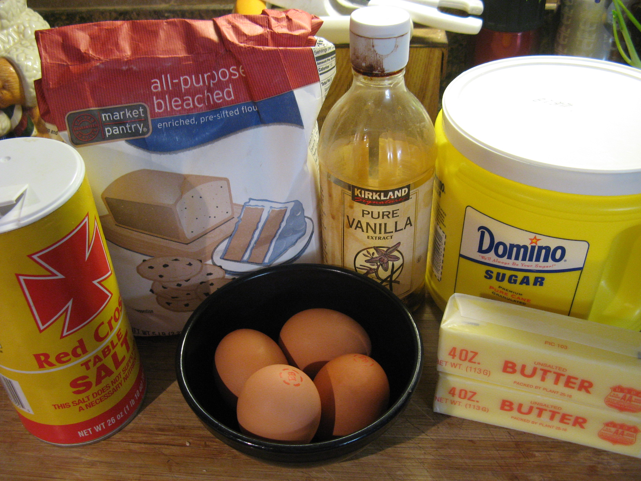The recipe consisted of ingredients I already had on hand: butter, flour, sugar, eggs, vanilla extract and salt.