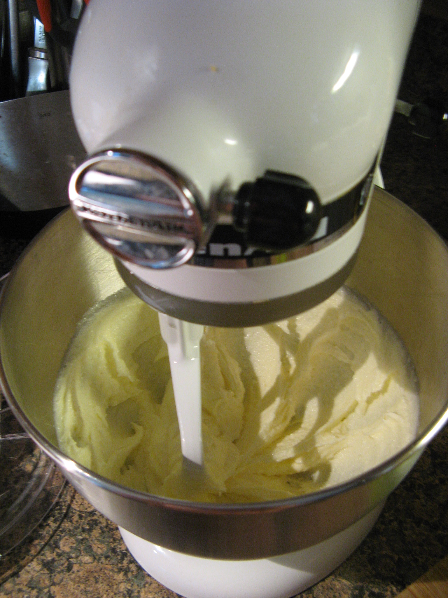I started by beating the butter and sugar together on a high speed until the mixture was light and fluffy.