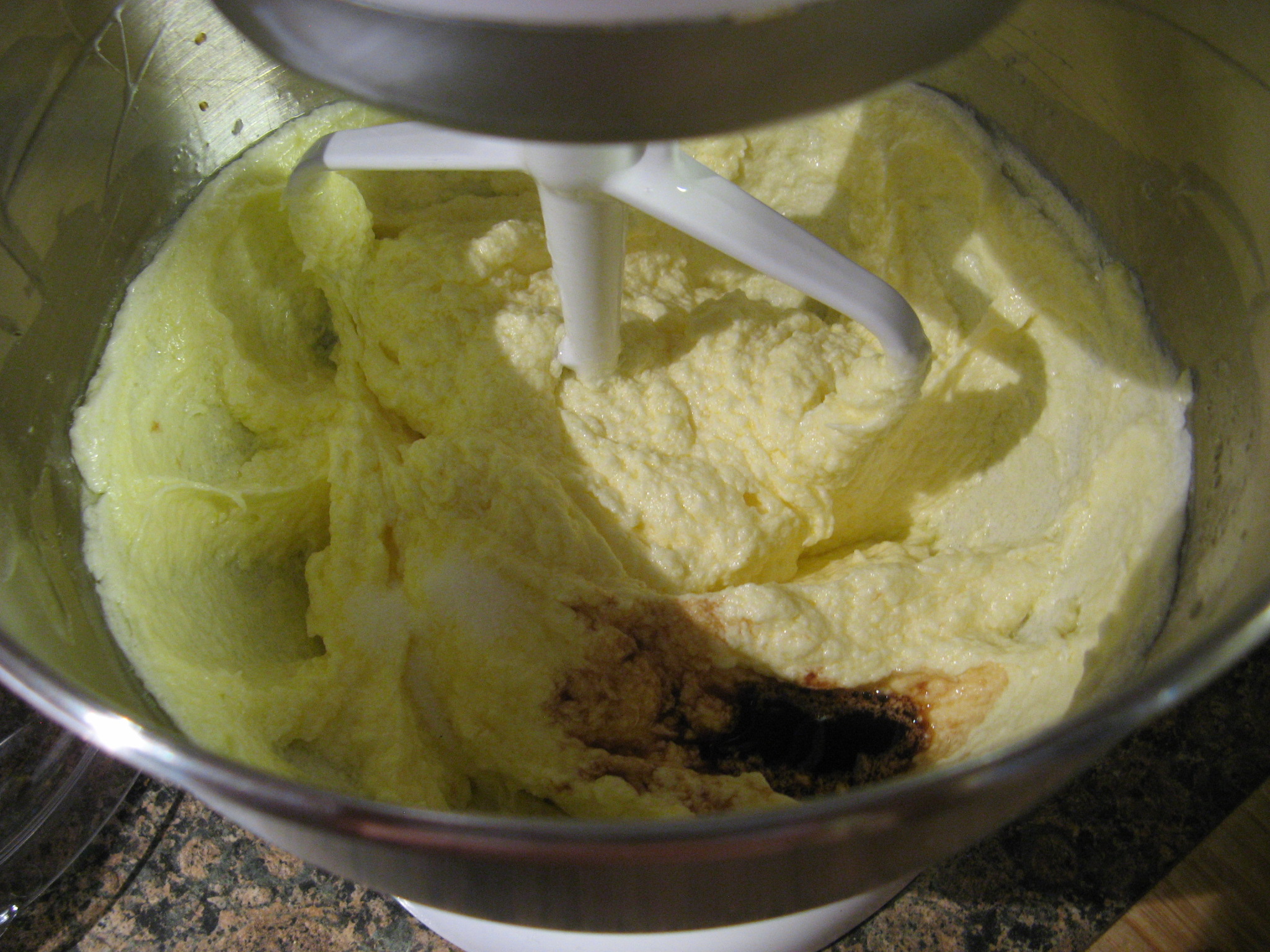 I then switched my mixer to a lower speed and gradually added in the flour until the batter was just coming together.
