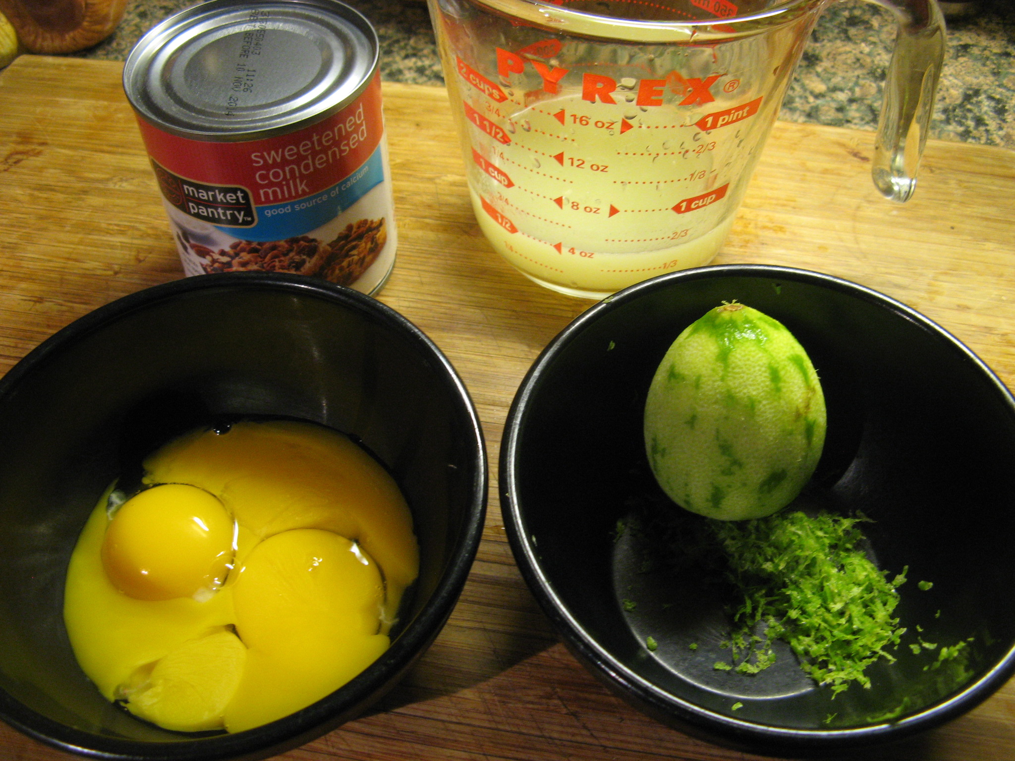 Along with the lime juice I also needed 4 egg yolks, a can of sweetened condensed milk and the zest of one regular lime to make the pie.
