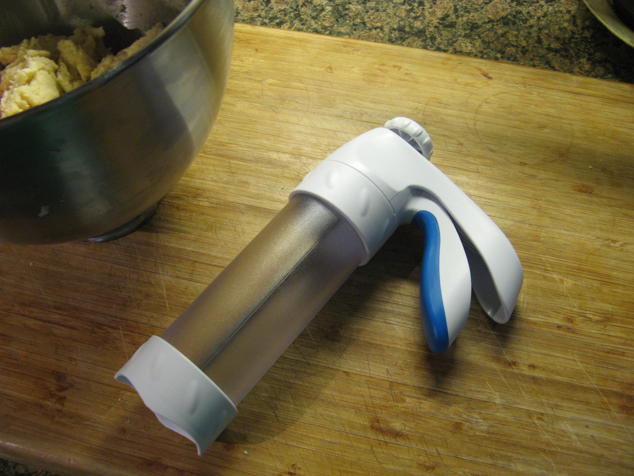 I filled my cookie press with the dough and was ready to start pressing out cookies in my selected shape.