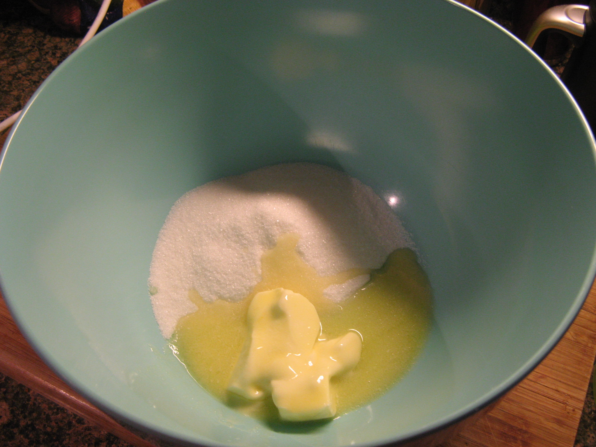 In a separate bowl I began making the batter for the cake by beating together butter and sugar.