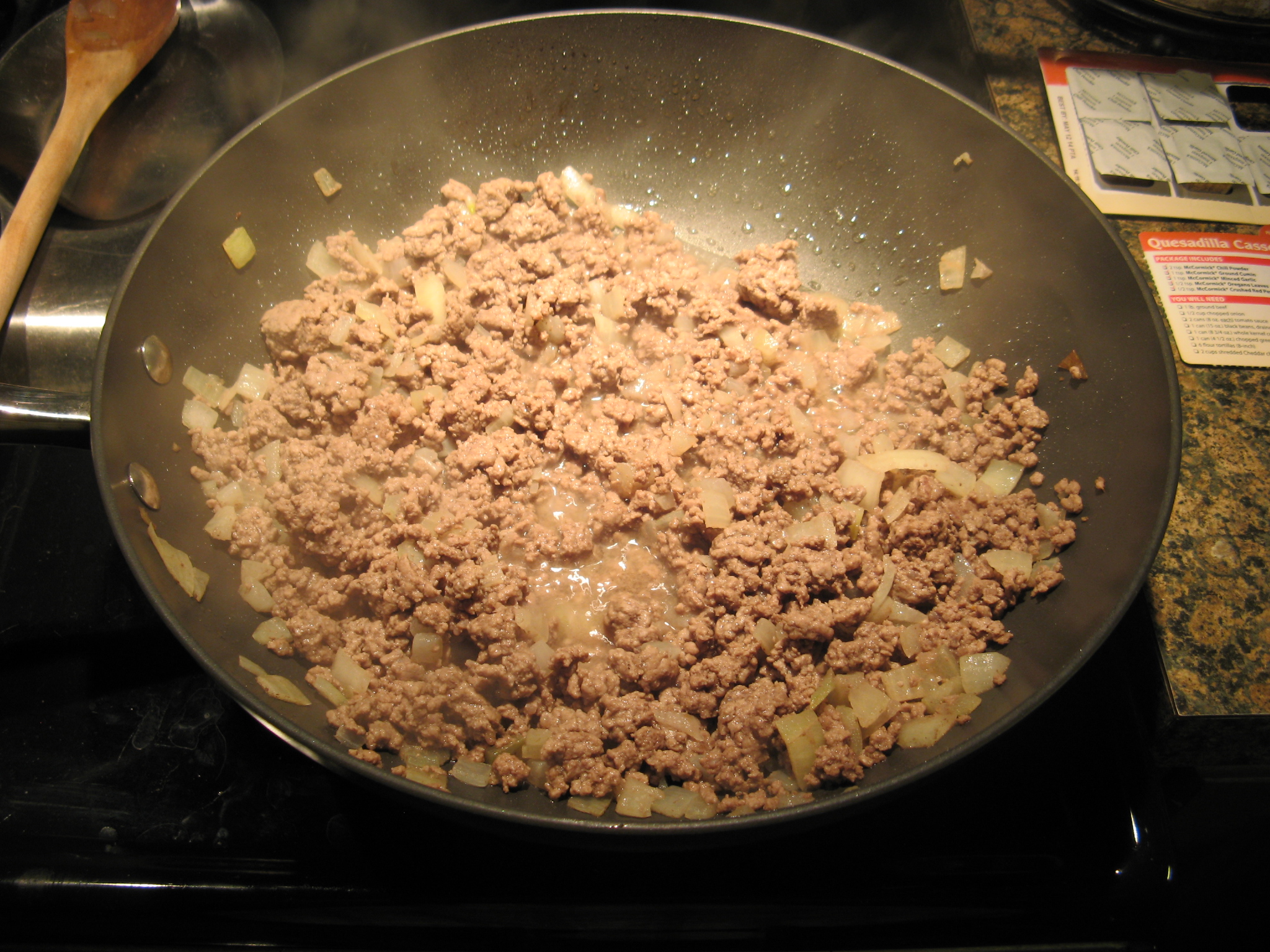 Up first I chopped the onion and cooked it with the ground beef until it was browned.