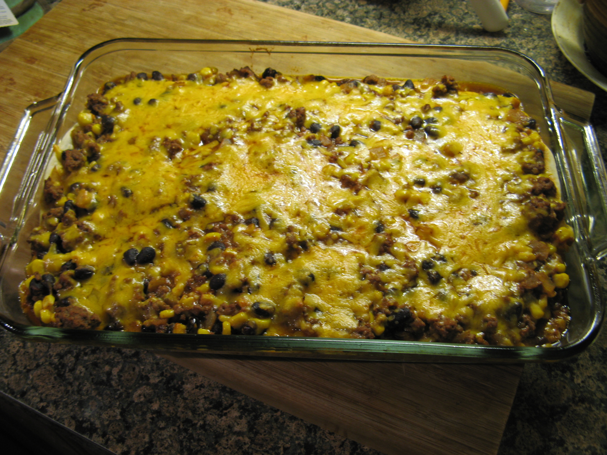I baked the casserole in a 350 degrees pre-heated oven for 15 minutes and then let it rest for 5 minutes before digging in. It was a hit… This recipe is definitely a keeper and thankfully uses spices that I currently have in my cabinet so there’s no need for the recipe packet next time.