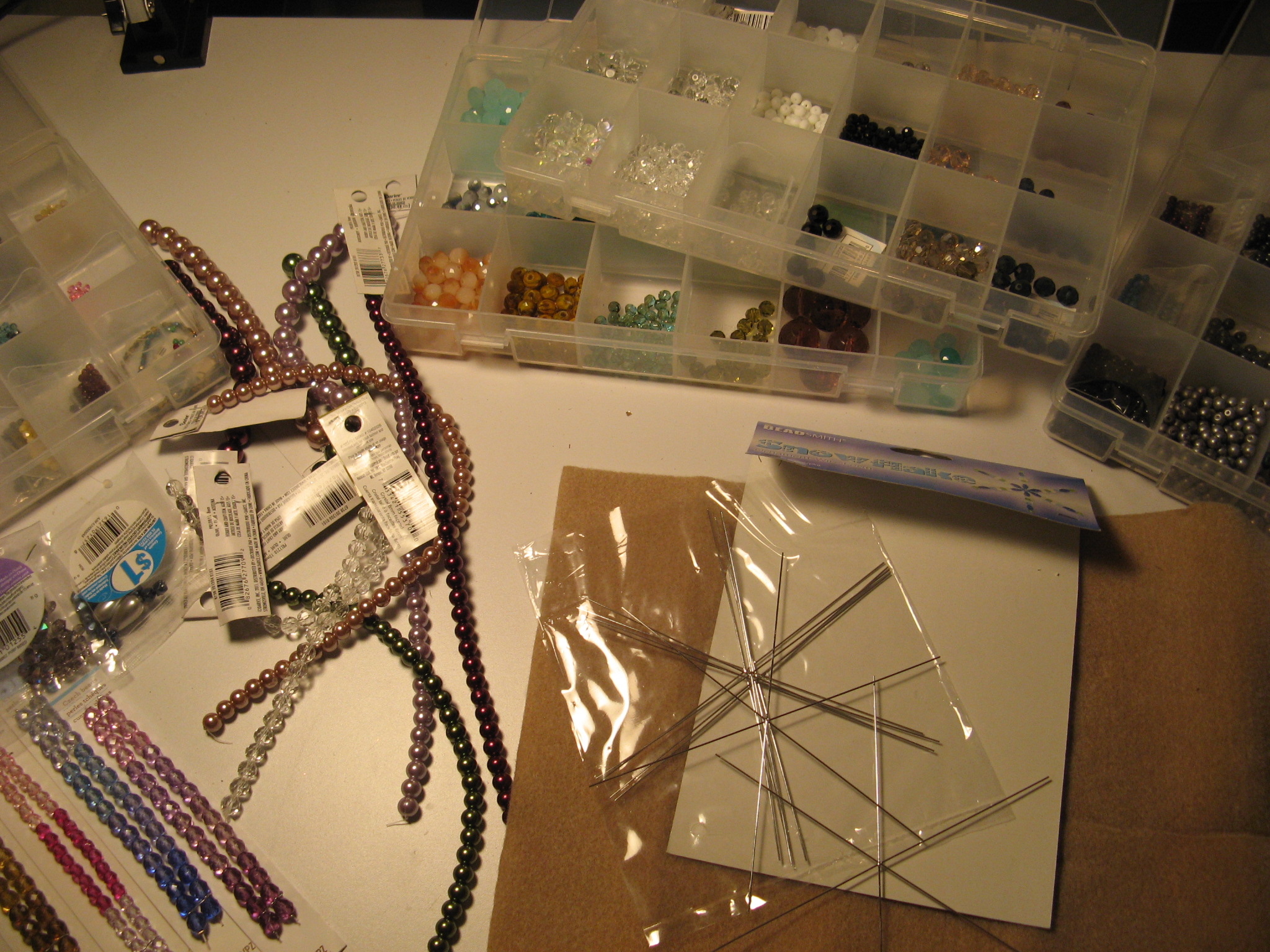 After the wreaths I moved on to making snowflake ornaments. I got the wire forms (6-inch) from Fusion Beads and then it was just a matter of decorating them with pearls, crystals and seed beads in colors that reflected the holiday season or the intended recipient’s favorite color. This was made all the more easier since I recently organized all of my jewelry supplies into storage containers.