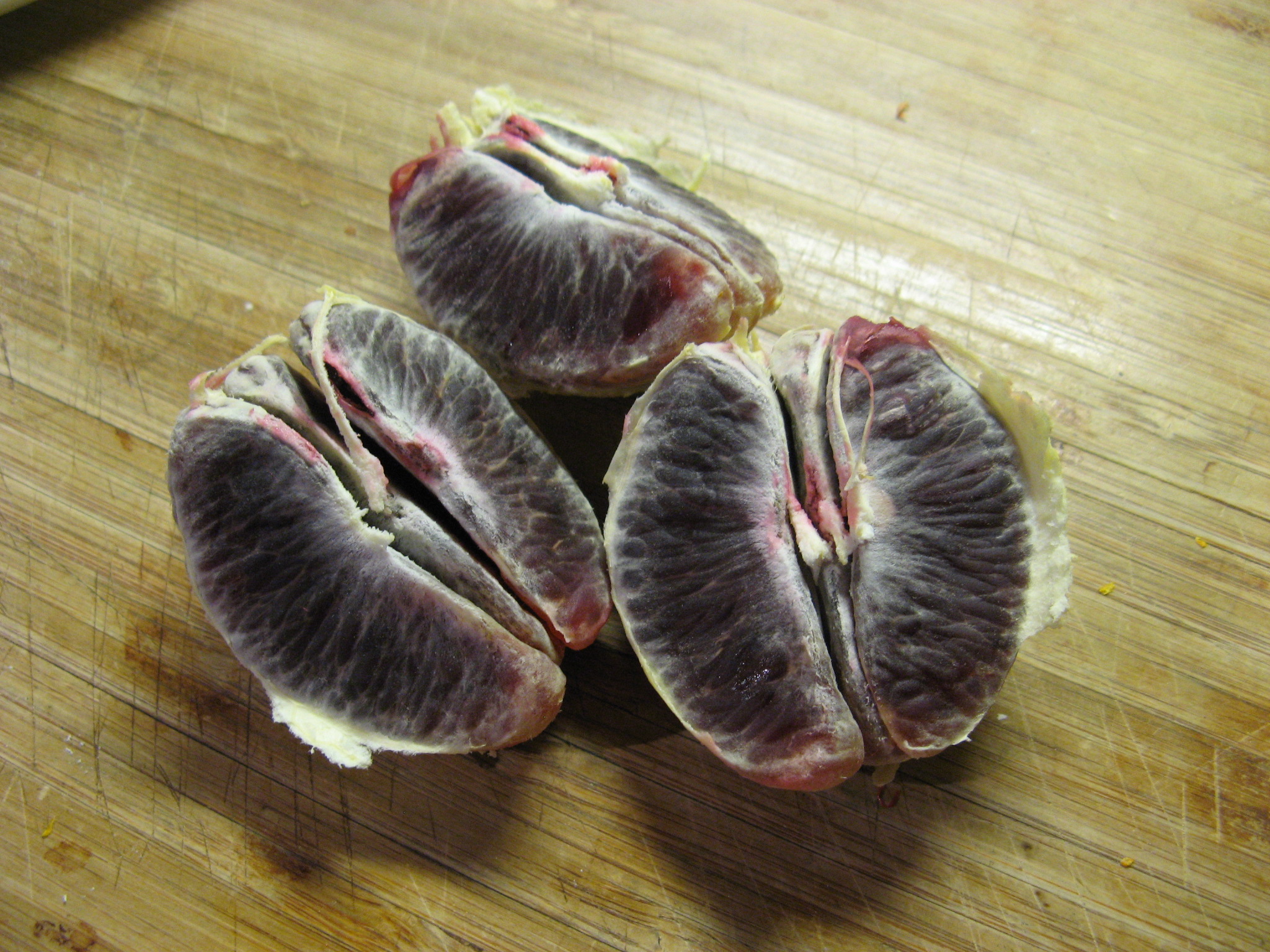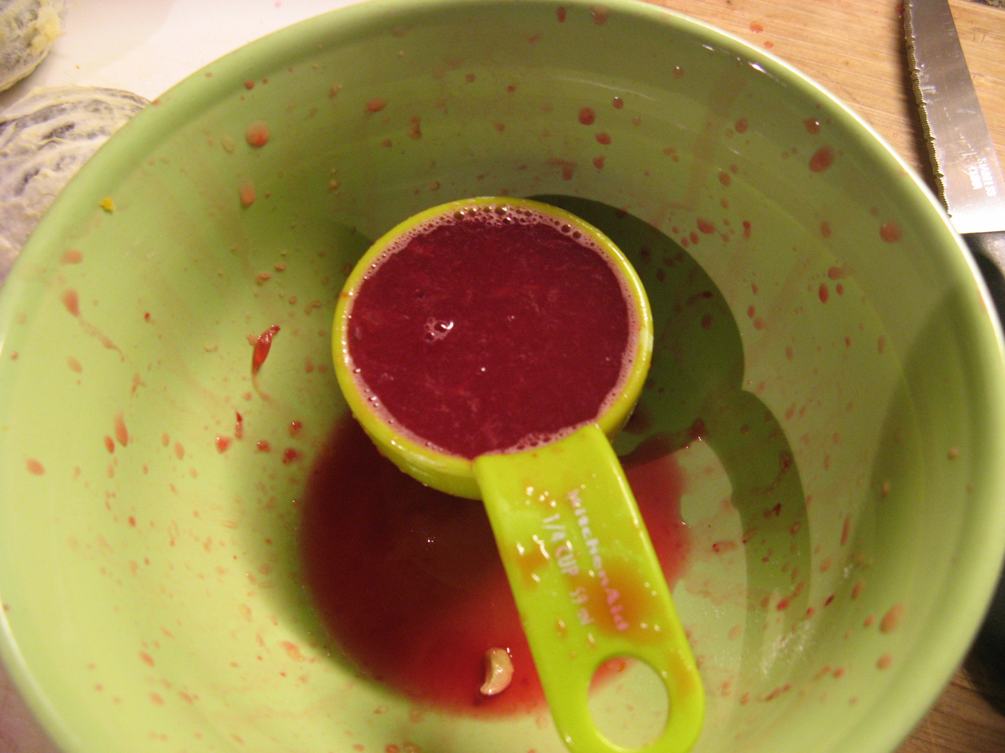 I squeezed a few segments to get 1/4 cup of juice. While it probably would have been easier just to squeeze the juice into a measuring cup this oddball method was what my hands reached for first.