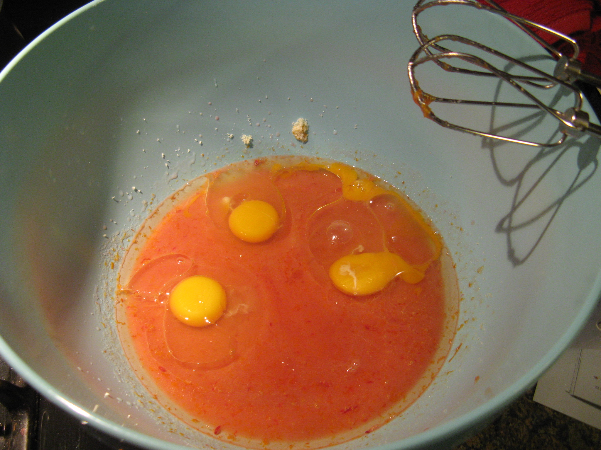 I then added in three eggs and extra-virgin olive oil. No worries… There wasn’t a hint of taste of olive oil in the final outcome and I must say the olive oil produced a very moist cake. If you want some more information on baking with olive oil check out this website.