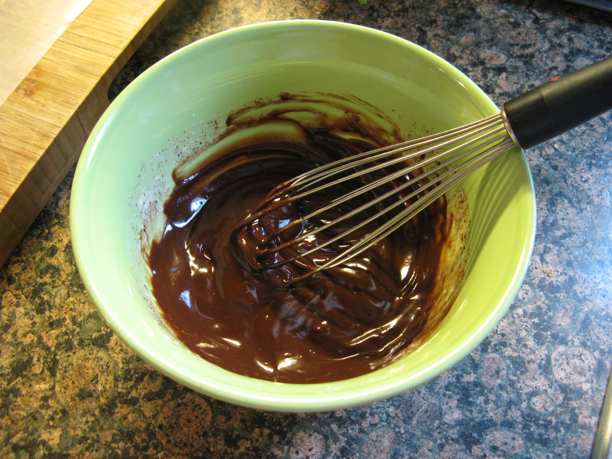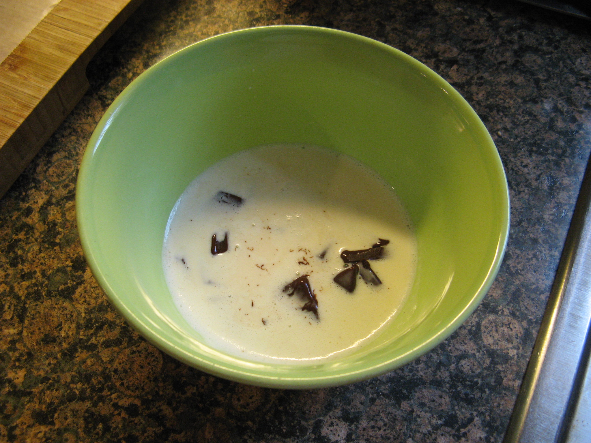 Once the cake cooled I made a dark chocolate glaze to drizzle over it. I did so by chopping up two ounces of bittersweet chocolate and then poured warmed heavy cream over it.