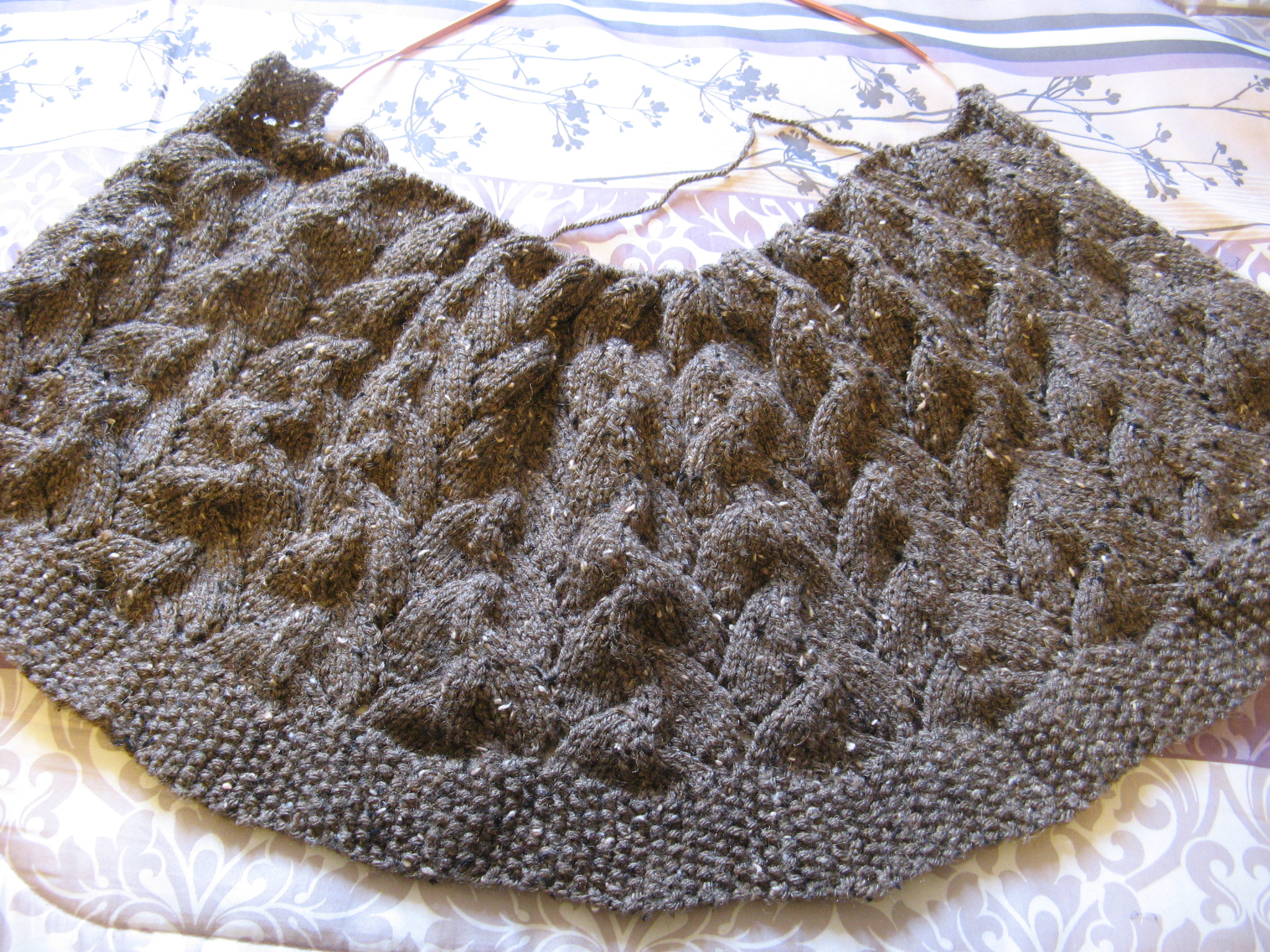But, I digress, back to the knitting project. This is probably the “biggest” thing I have made for myself. While I have knitted (and crocheted) baby blankets and afghans for others I usually stick to making scarves for myself. But, after the hat debacle I decided I would make something for myself that has been sitting on my to-do list for over a year – the Easy Lace Shrug from Lion Brand Yarn – or as I have just been telling others when they see me knitting it… a cardigan. Starting this was my biggest obstacle. I couldn’t get the Seed Stitch correct. This is probably one of the easiest knitting stiches out there but for some reason it just wasn’t clicking with me until I watched a video on how to do it. I kept reverting back to a Rib Stitch. After, well, I won’t say how many tries because in all honesty I lost count, I finally got it right and I was on my way.