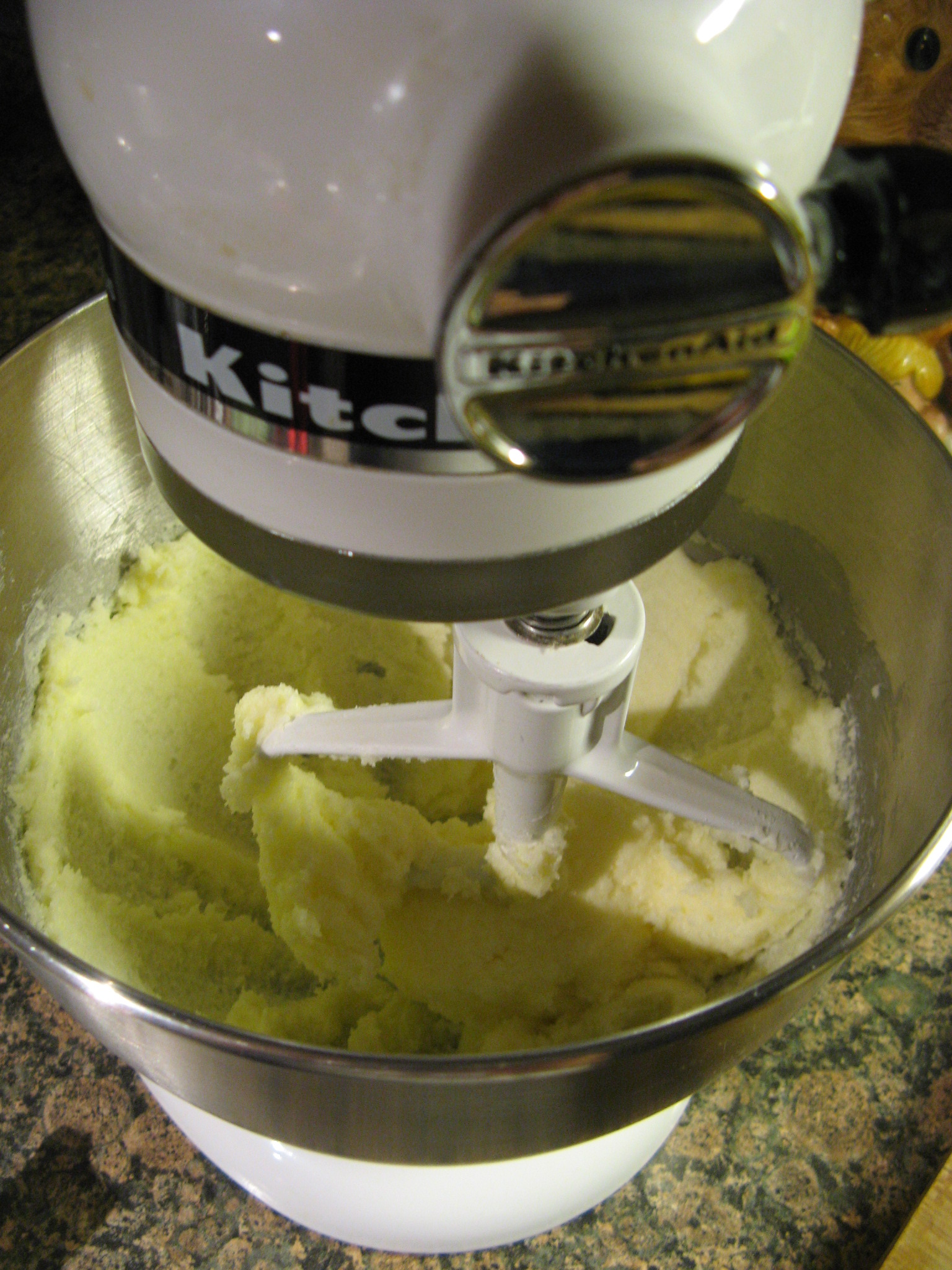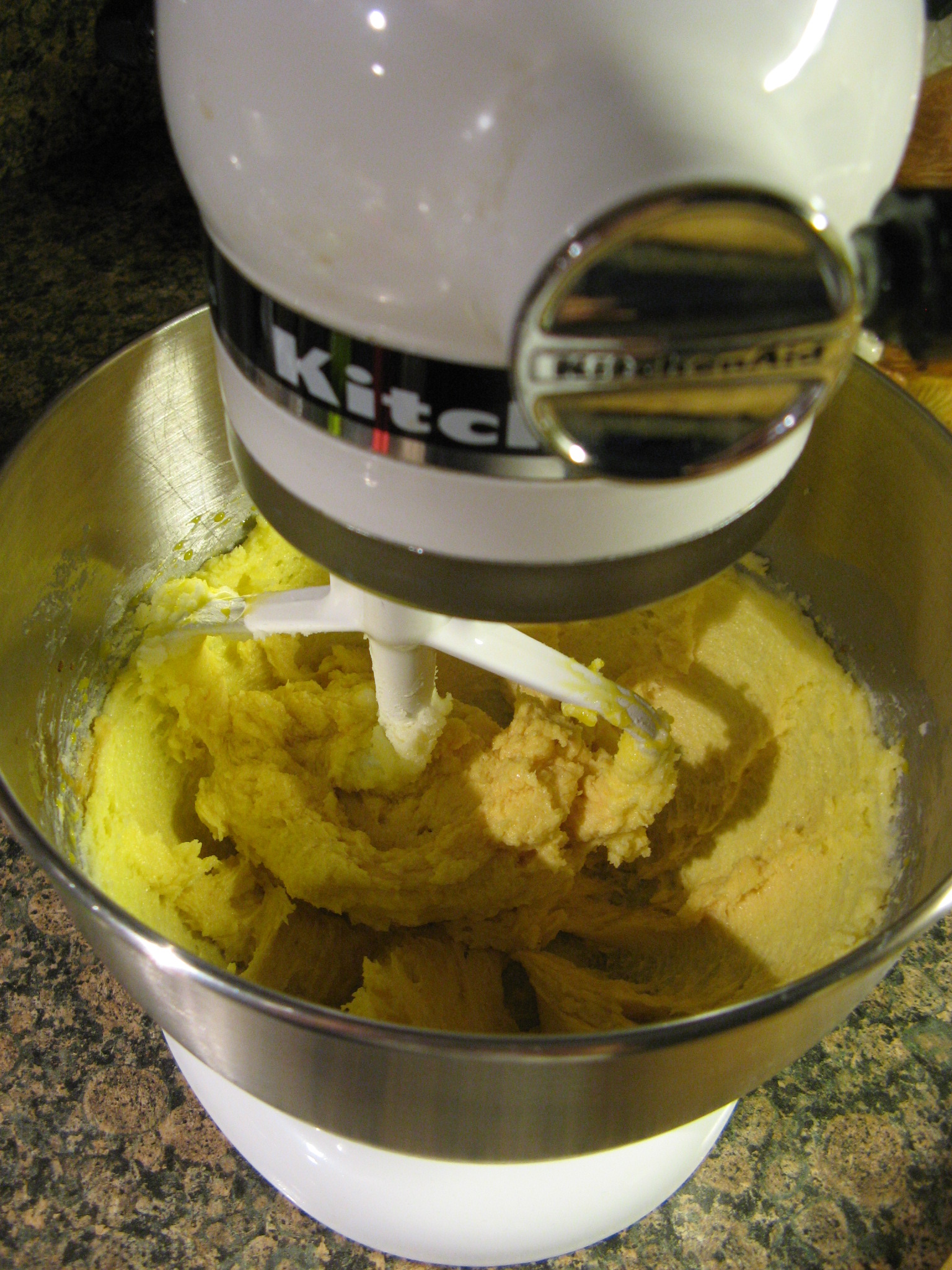 To begin I combined a cup each of sugar and butter in my stand mixer and mixed it together until it was light and fluffy.
