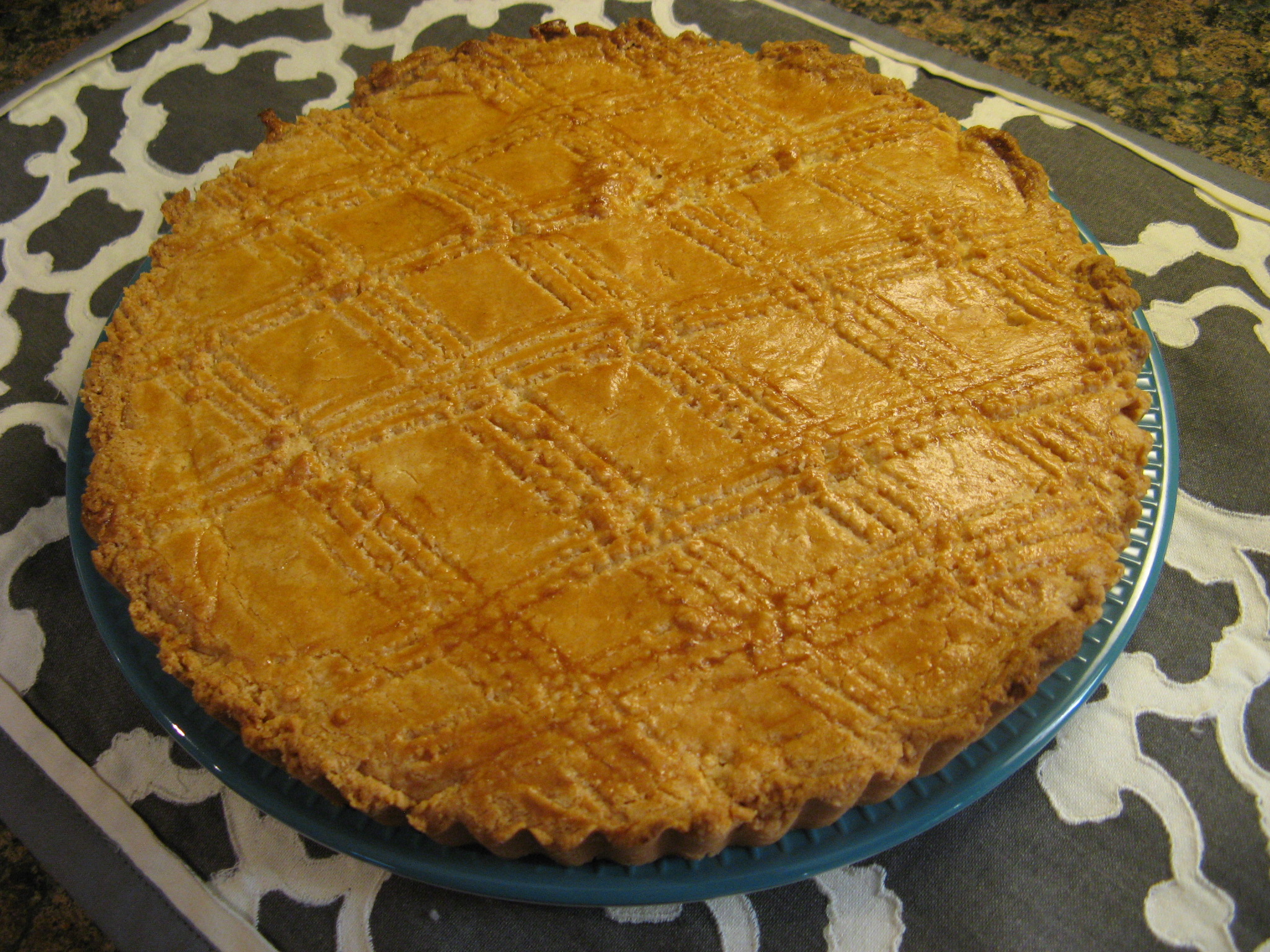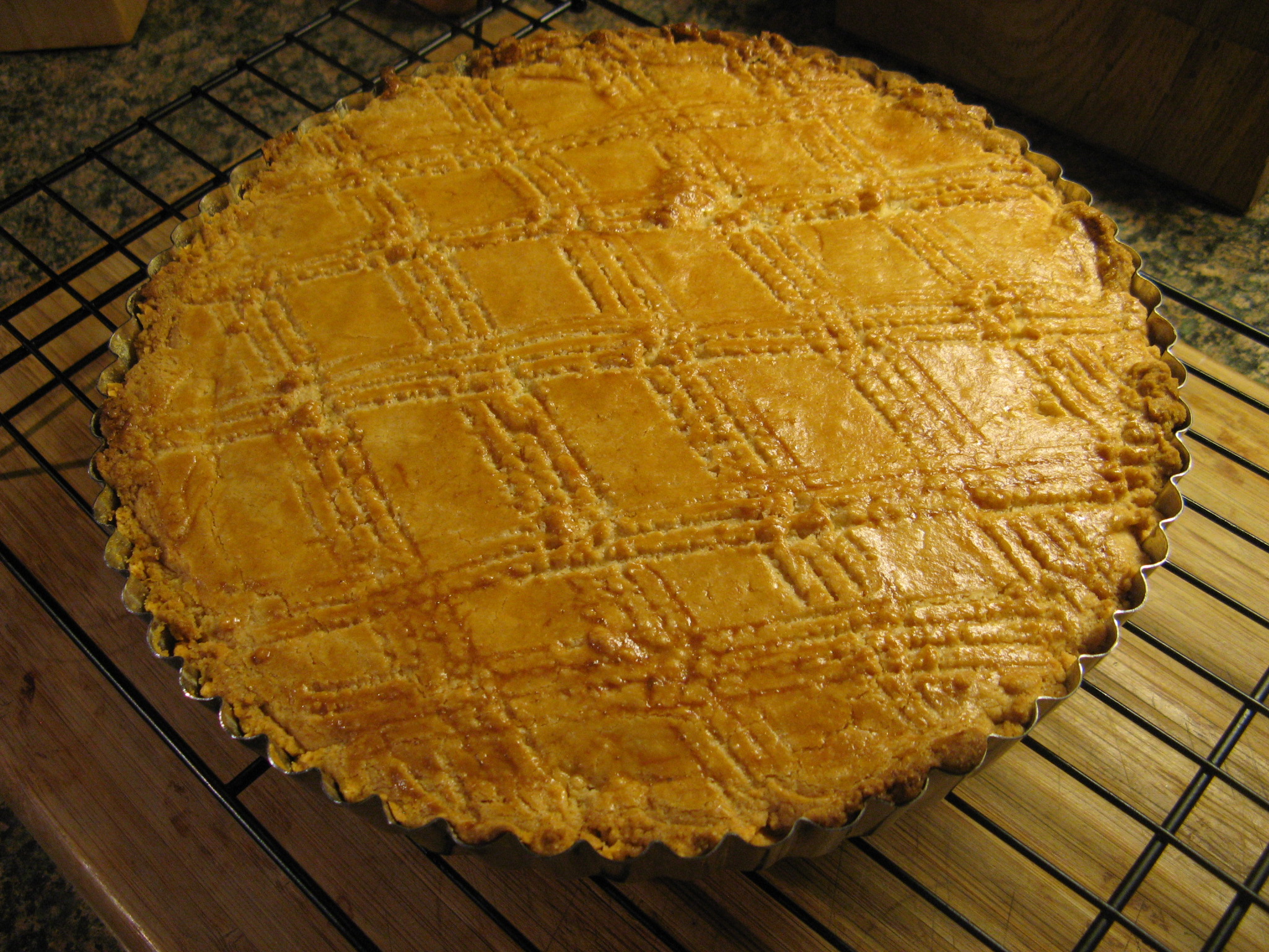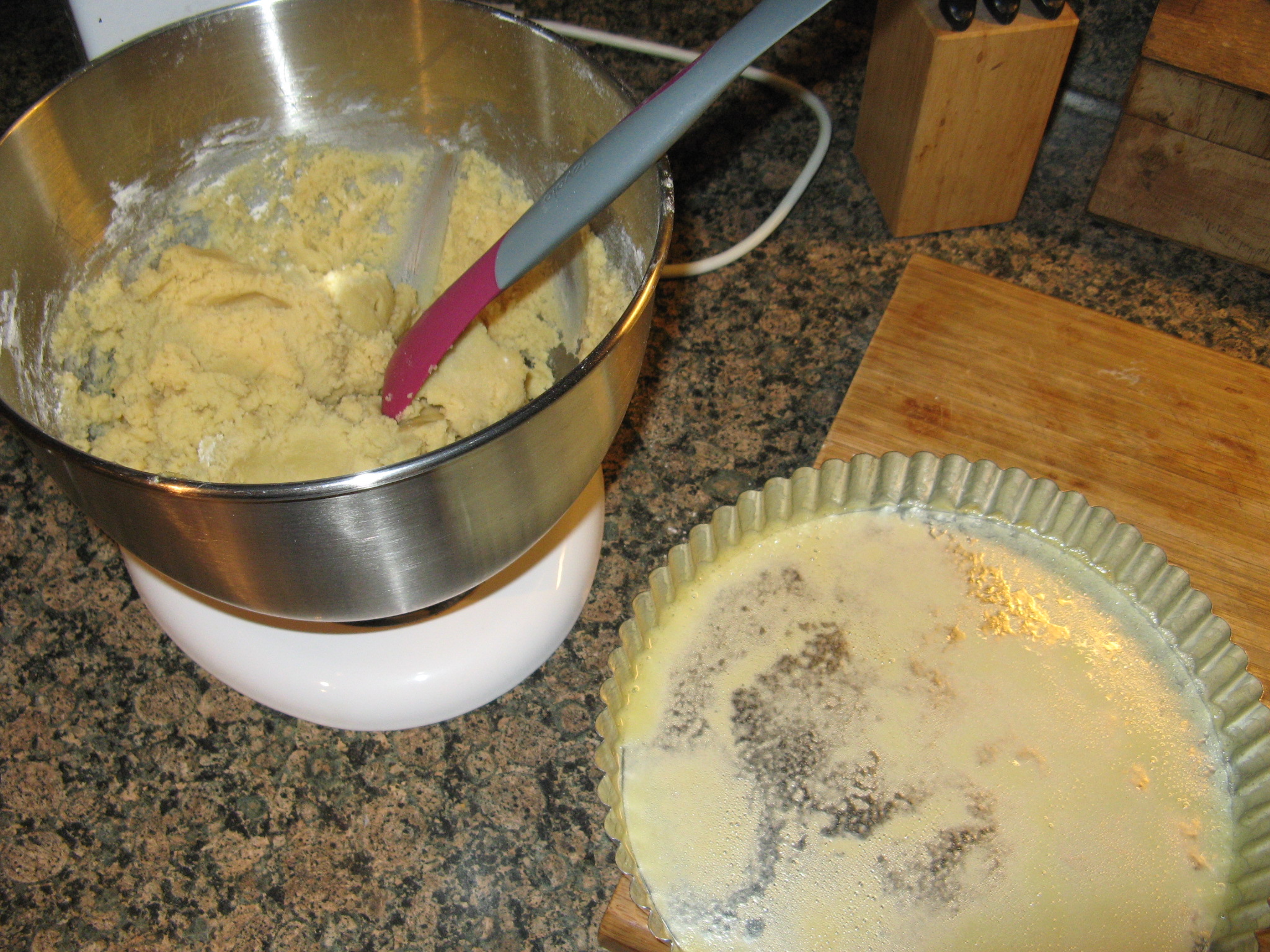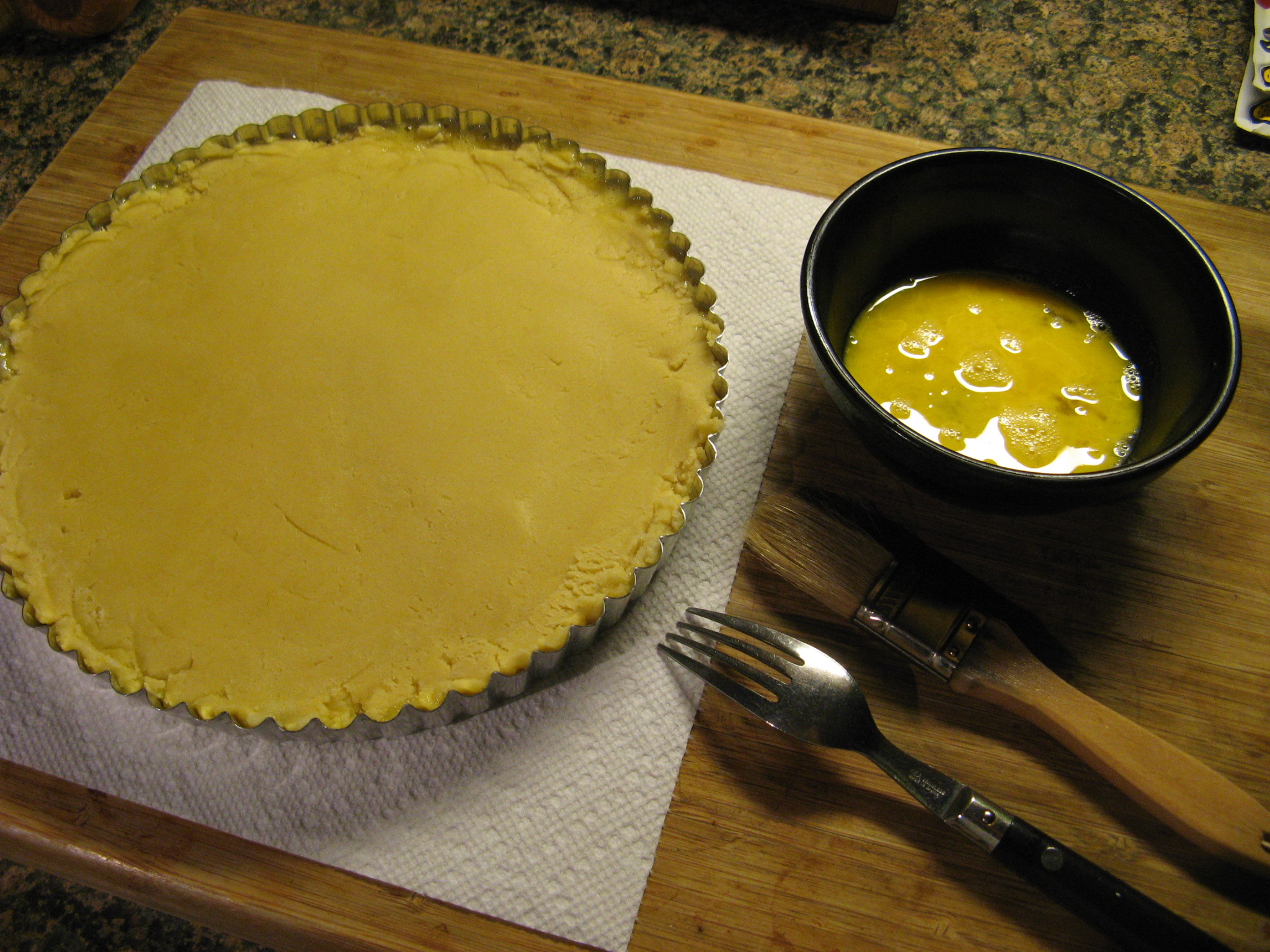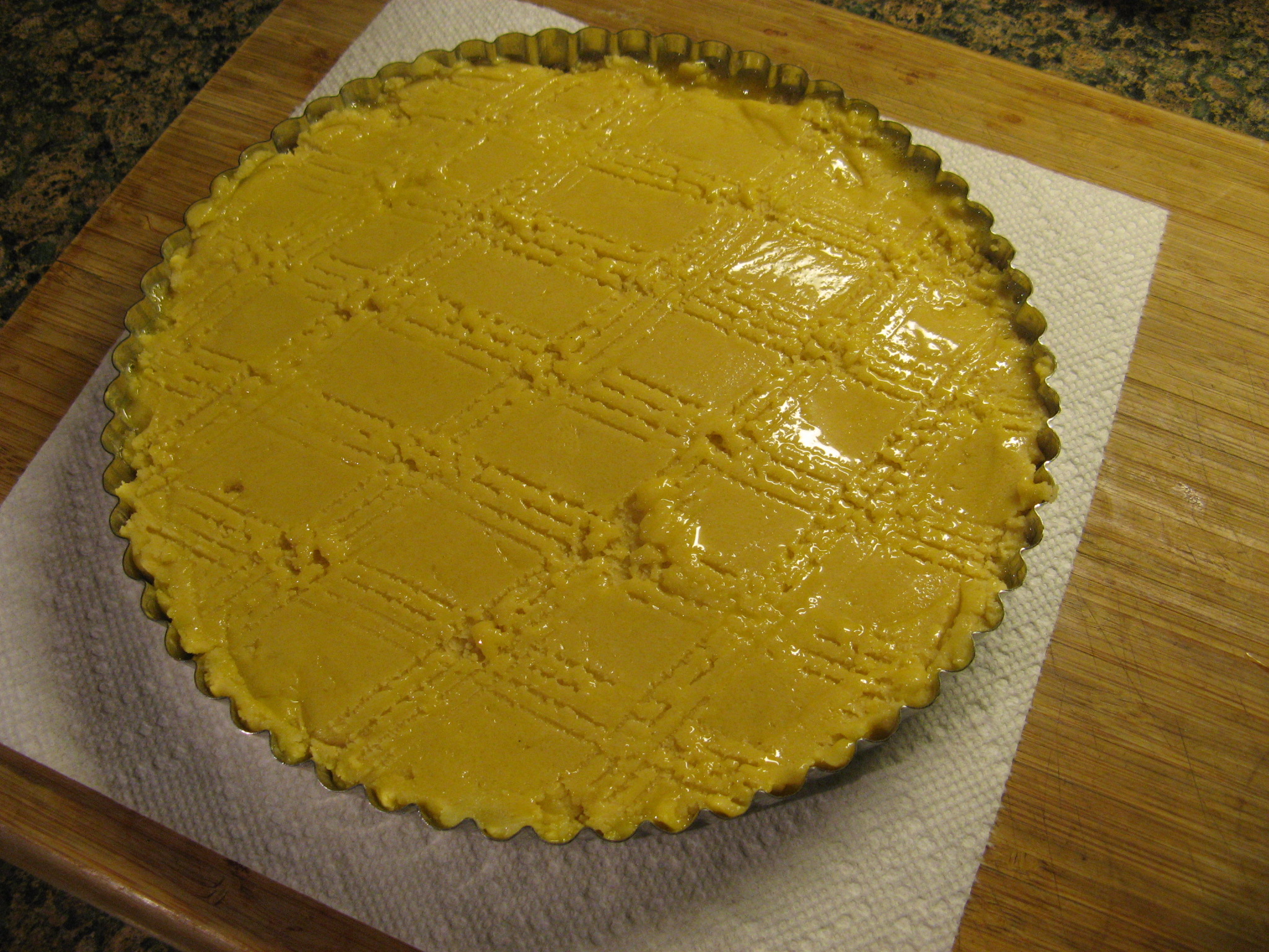 Following refrigeration it was time to prep the top of the tart for baking by brushing it with an egg wash and making a criss-cross pattern.
