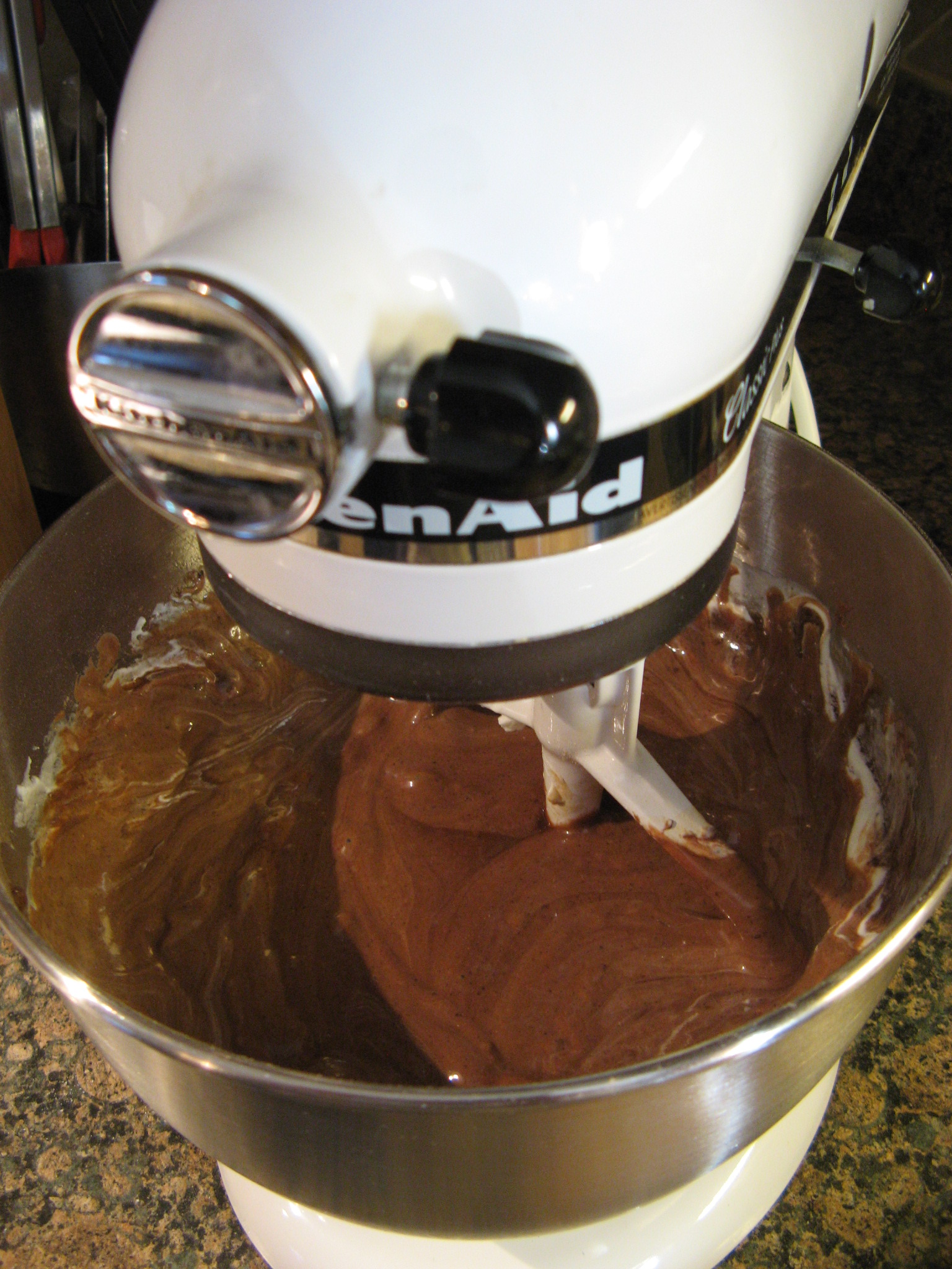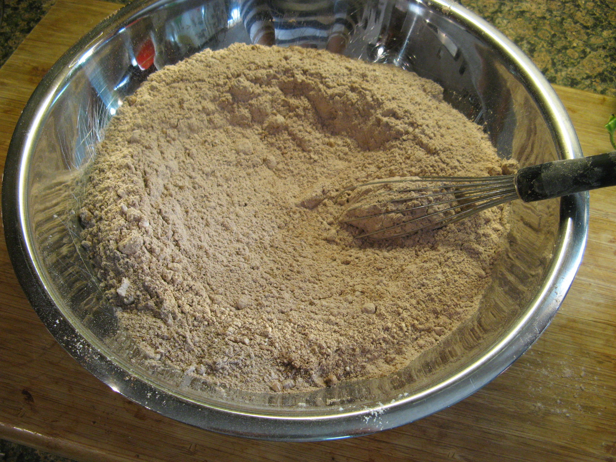 To begin I whisked together my dry ingredients (flour, cocoa powder, sugar, light brown sugar, baking soda and salt) in one bowl and malted milk powder and milk in another bowl.