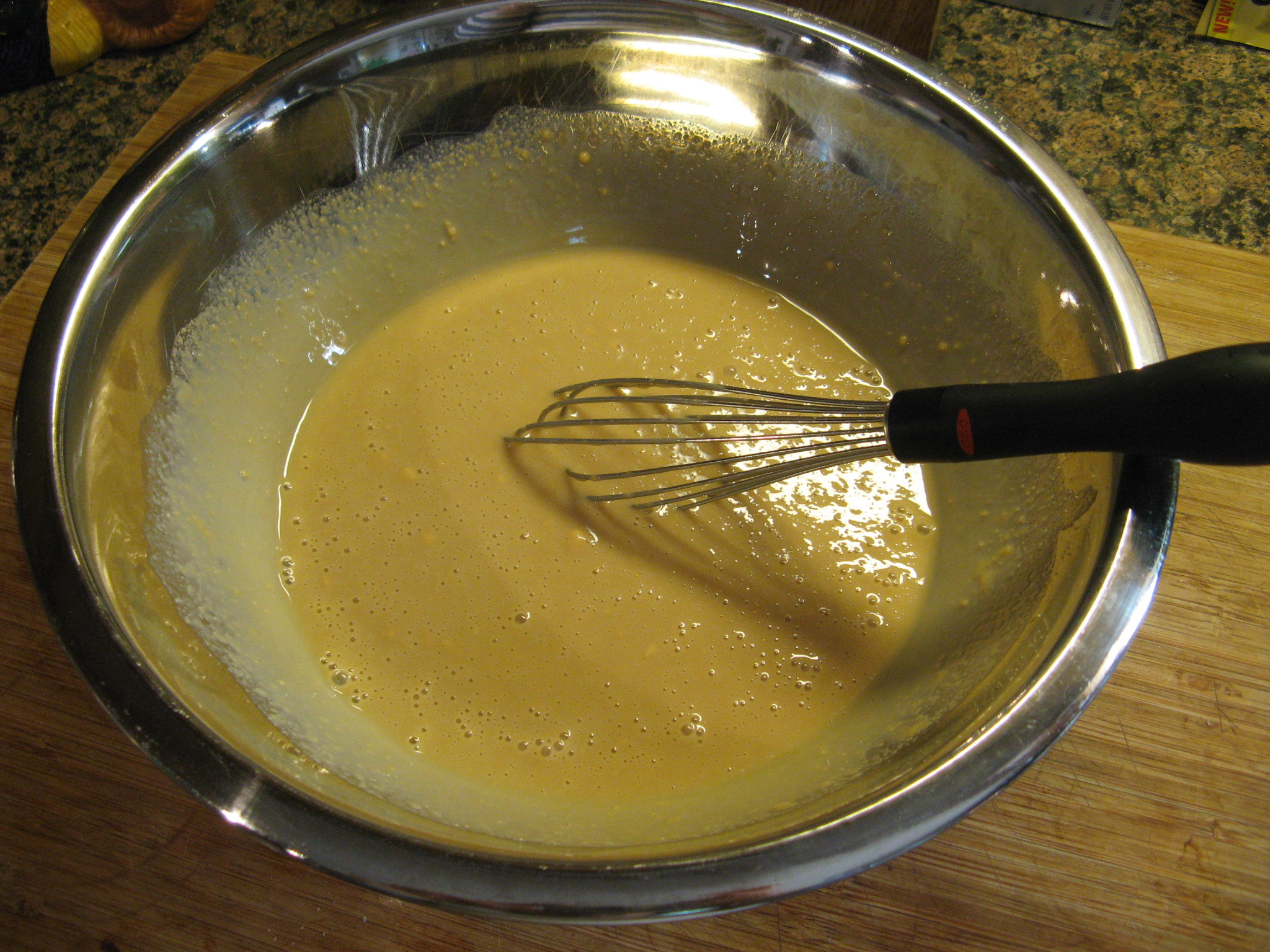 To finish the batter I beat in three eggs, sour cream and vanilla.