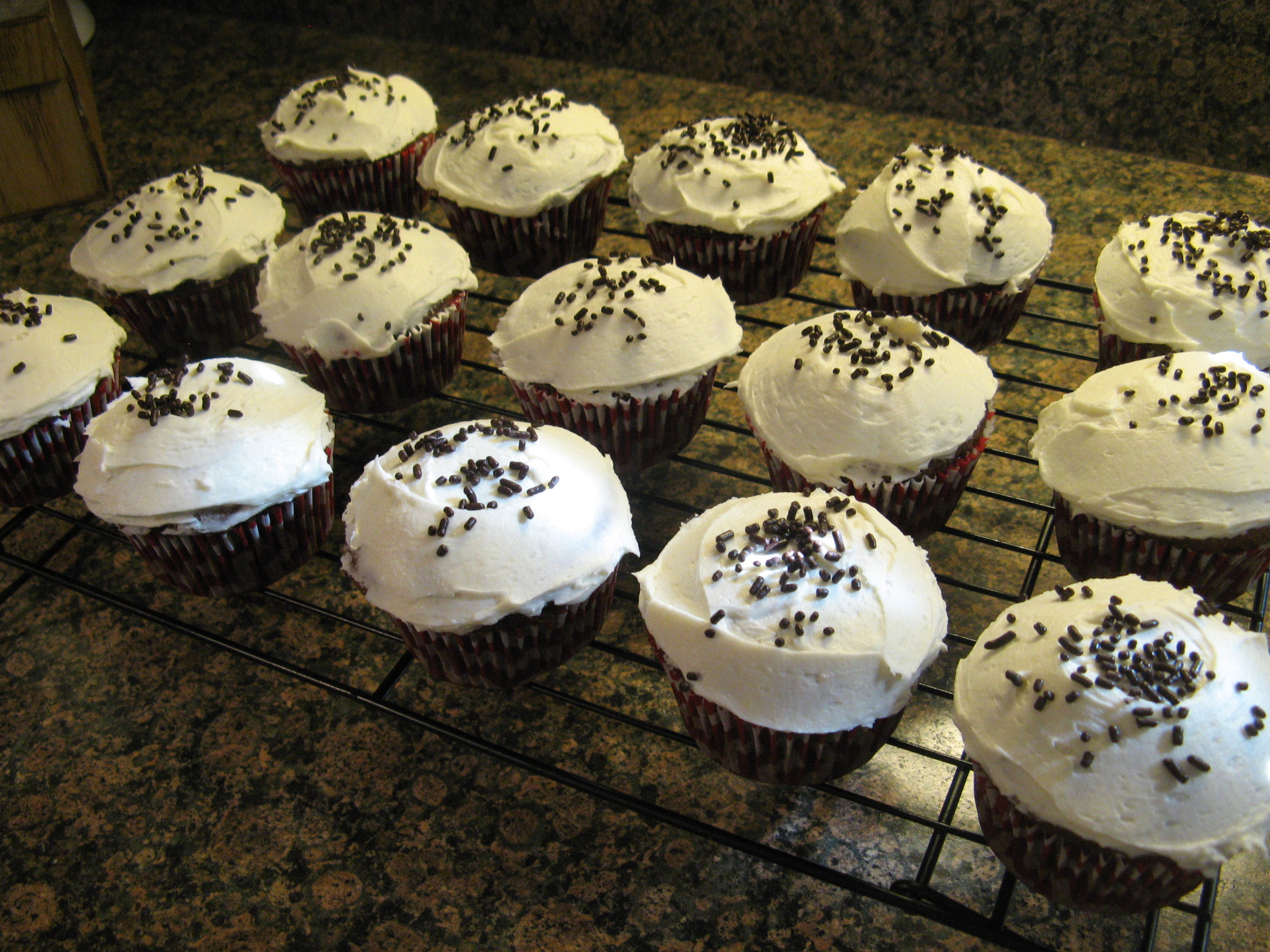 As opposed to piping my favorite 1M Swirl on these cupcakes, I frosted them using an offset spatula and then decorating them with chocolate sprinkles.