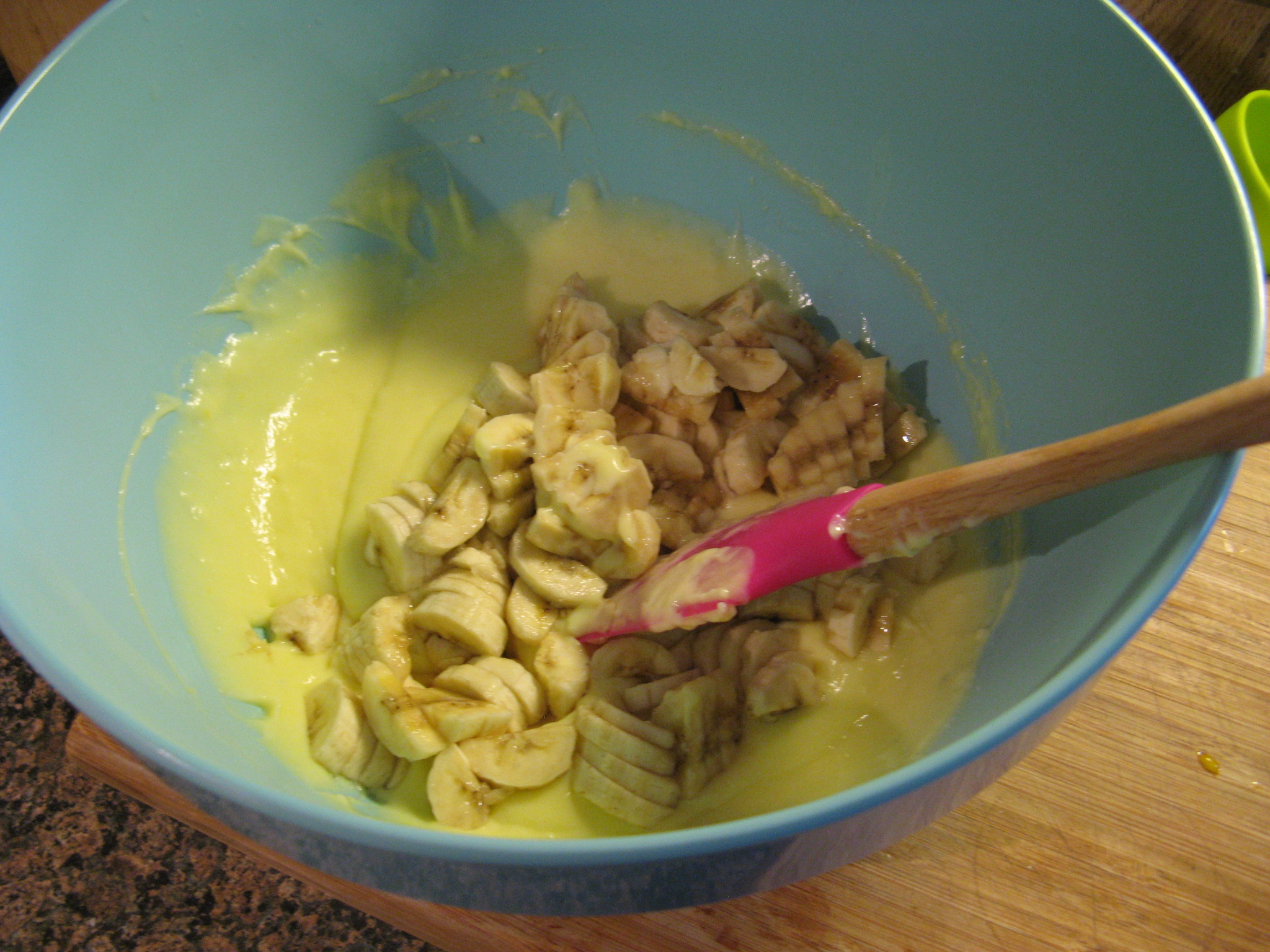 And then mixed in the butter and once it was melted I folded in the bananas.