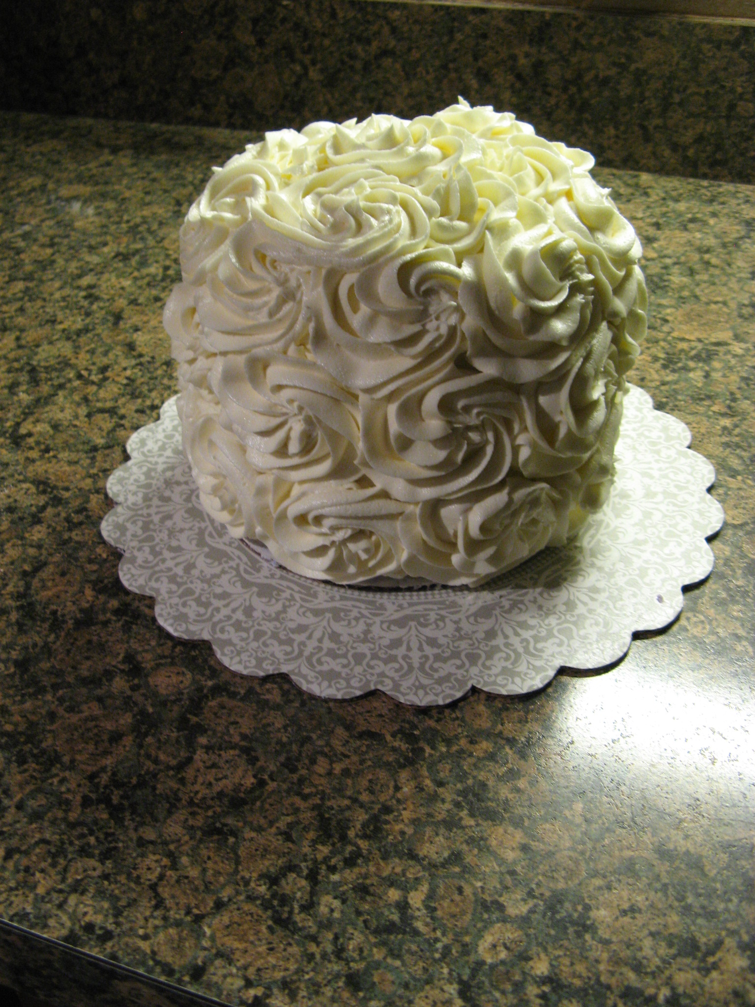 rosettes. I did take the Wilton decorating classes some time ago and while I did learn how to make rosettes I normally just decorate a spot or two with them but lately I have been seeing these beautifully cakes decorated with large rosettes and wanted to try it myself.