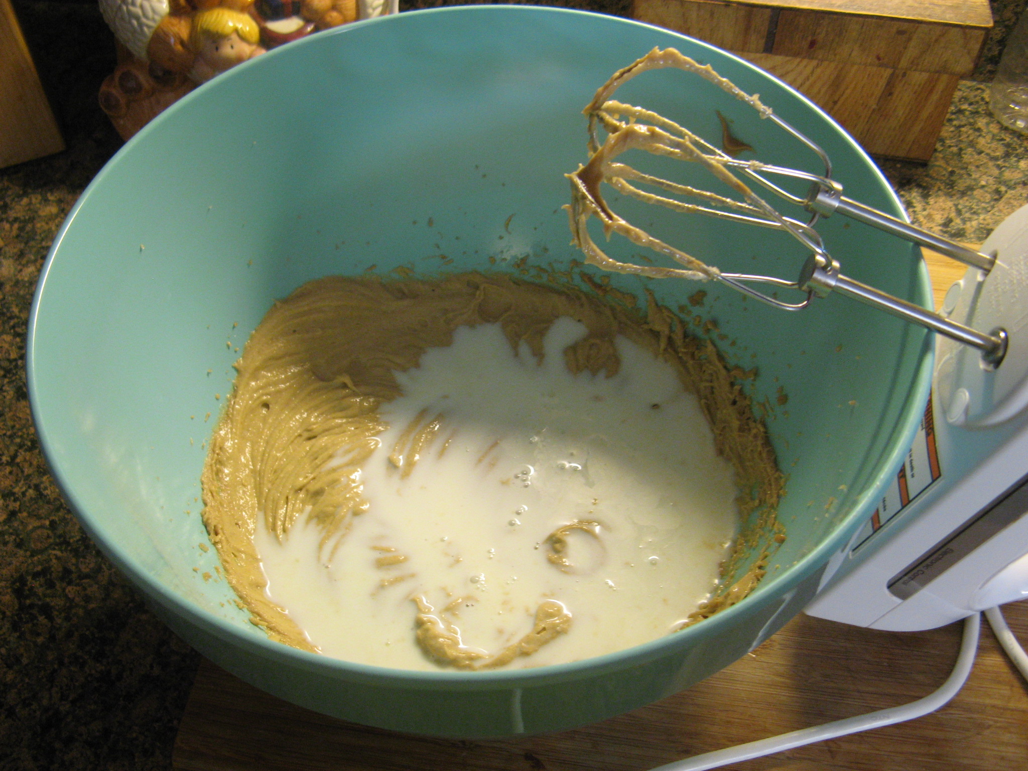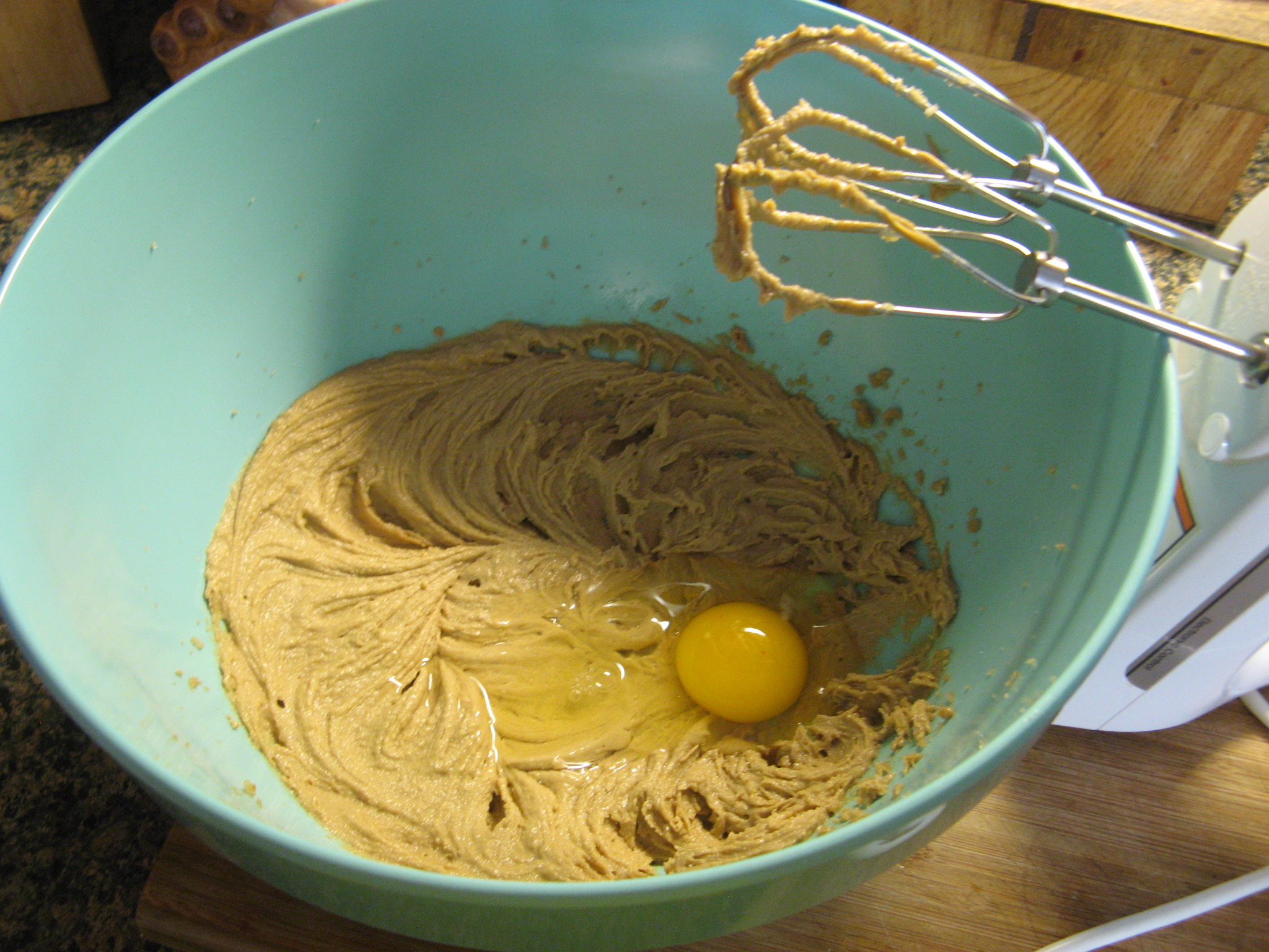 Once the peanut butter was incorporated I added in two eggs, one at a time.