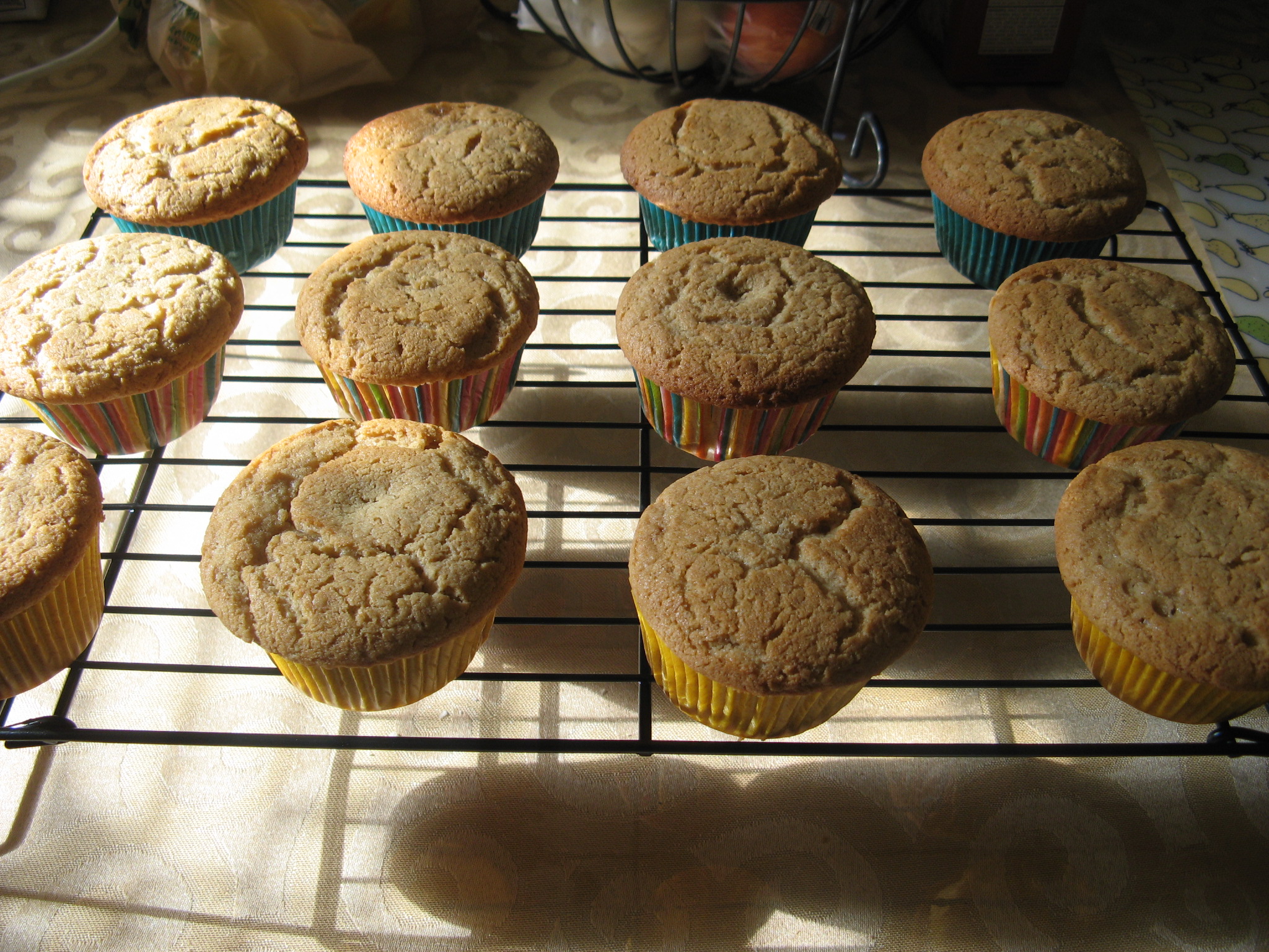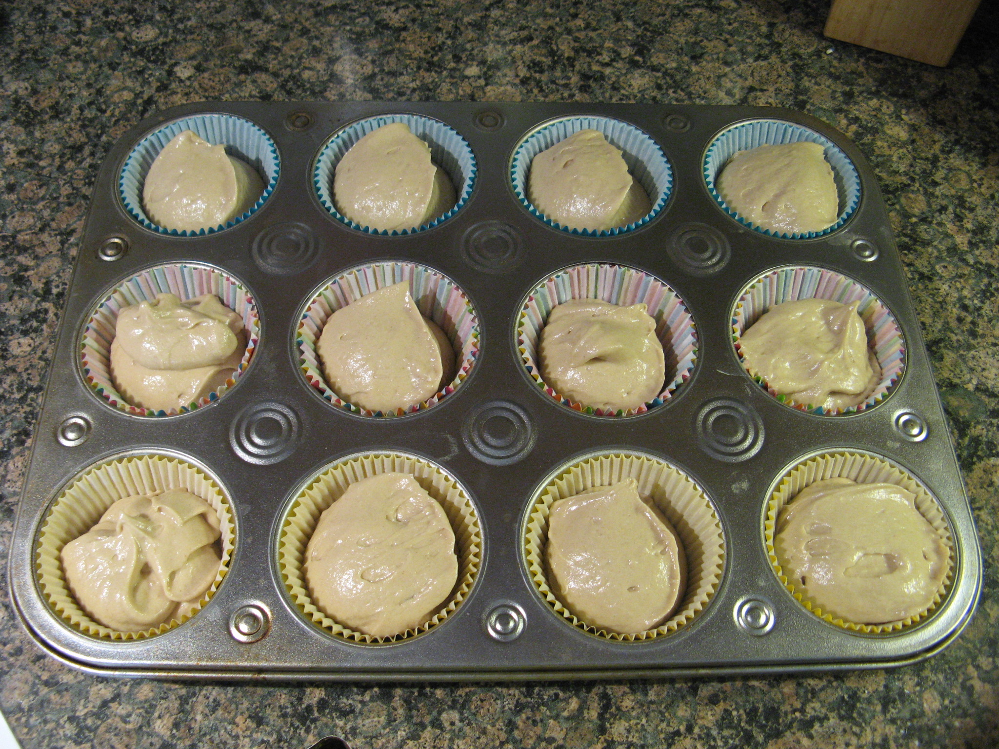 After filling the cupcake liners with about 1/4 cup of batter I baked them in a 350 F preheated oven for 25 minutes.