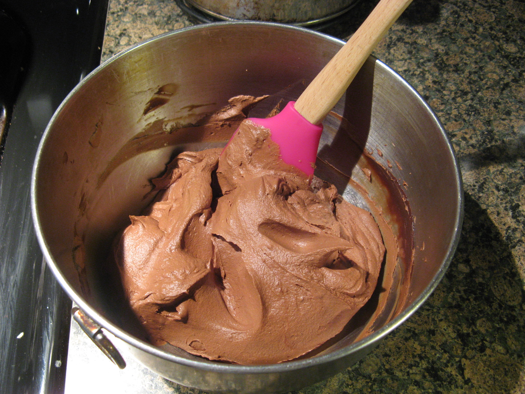 I then cooled the melted chocolate in the refrigerator for about 40 minutes and then 15 minutes in the freezer so it could chill but not become too firm. I then whipped it until it was creamy and then spread it over each of the cupcakes.