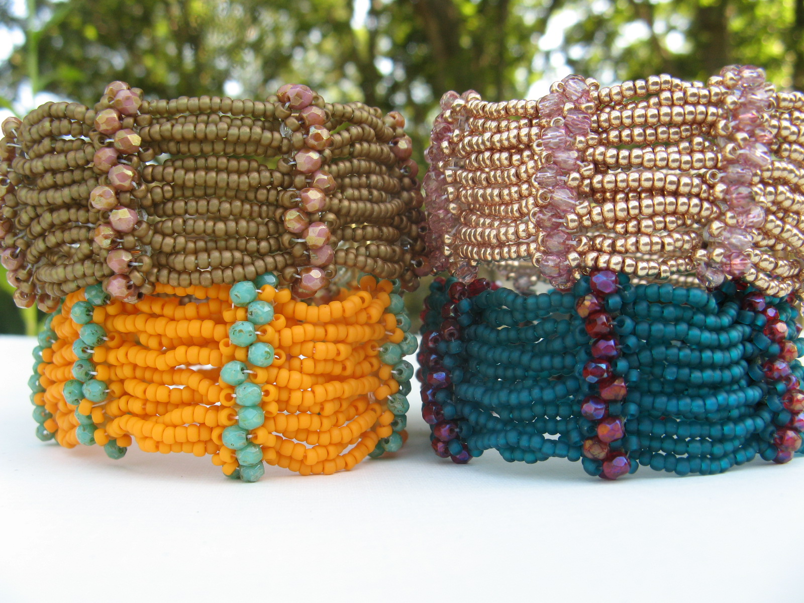 The same bracelet but with an embellished edge comprised of seed beads and drop beads.