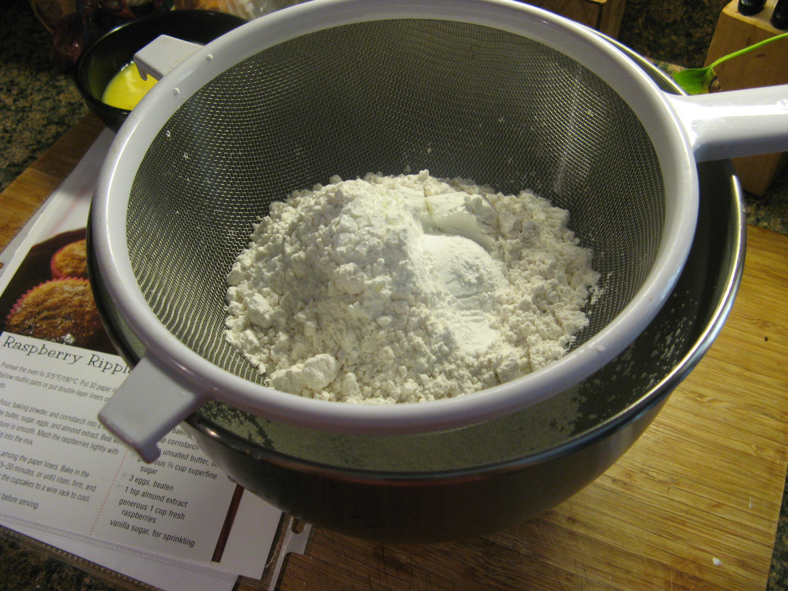 I then sifted flour, baking powder, and cornstarch into the bowl of my stand mixer.
