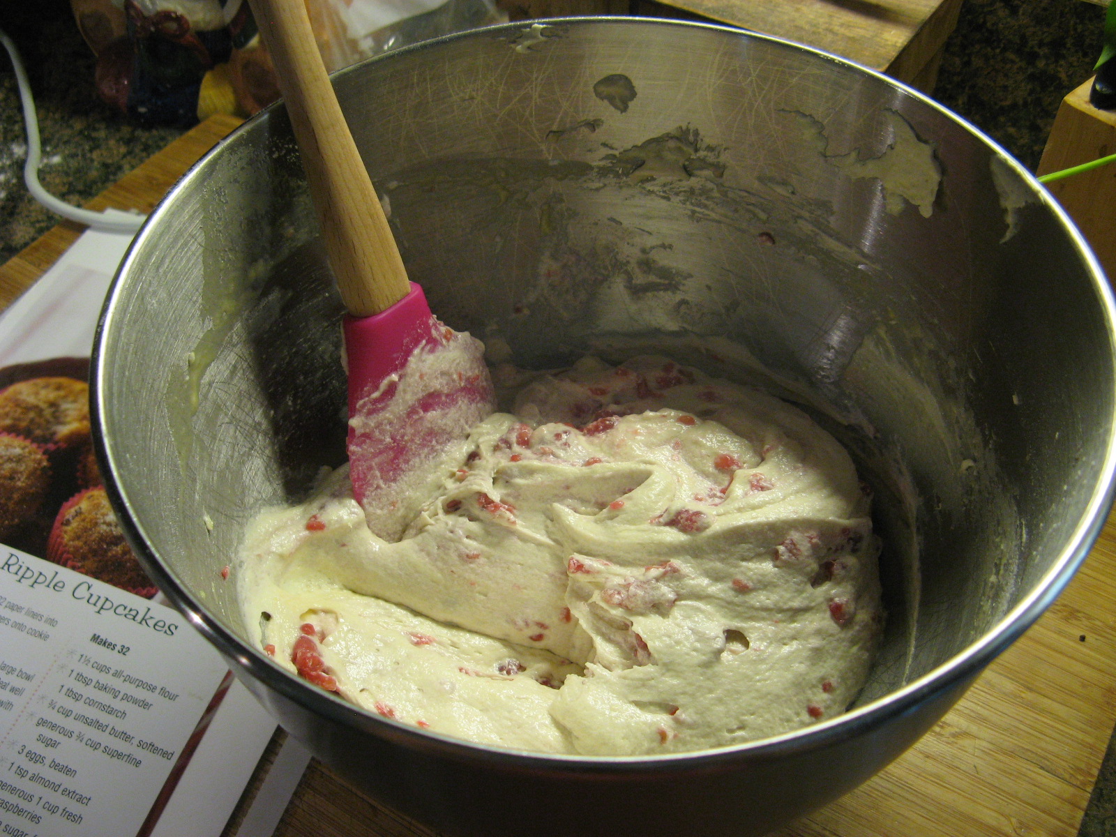 Last week I took a mini road trip which of course meant I had to bake some yummy treats for the drive. I didn’t want to make anything that could possibly spoil so I settled on trying a cupcake recipe that didn’t call for the cupcakes to be frosted – mini Raspberry Ripple Cupcakes. I’ve wondered whether an unfrosted cupcake would qualify as being a muffin and after a few Google searches I haven’t been able to get a concrete answer on that one. Do you guys have any ideas on that?