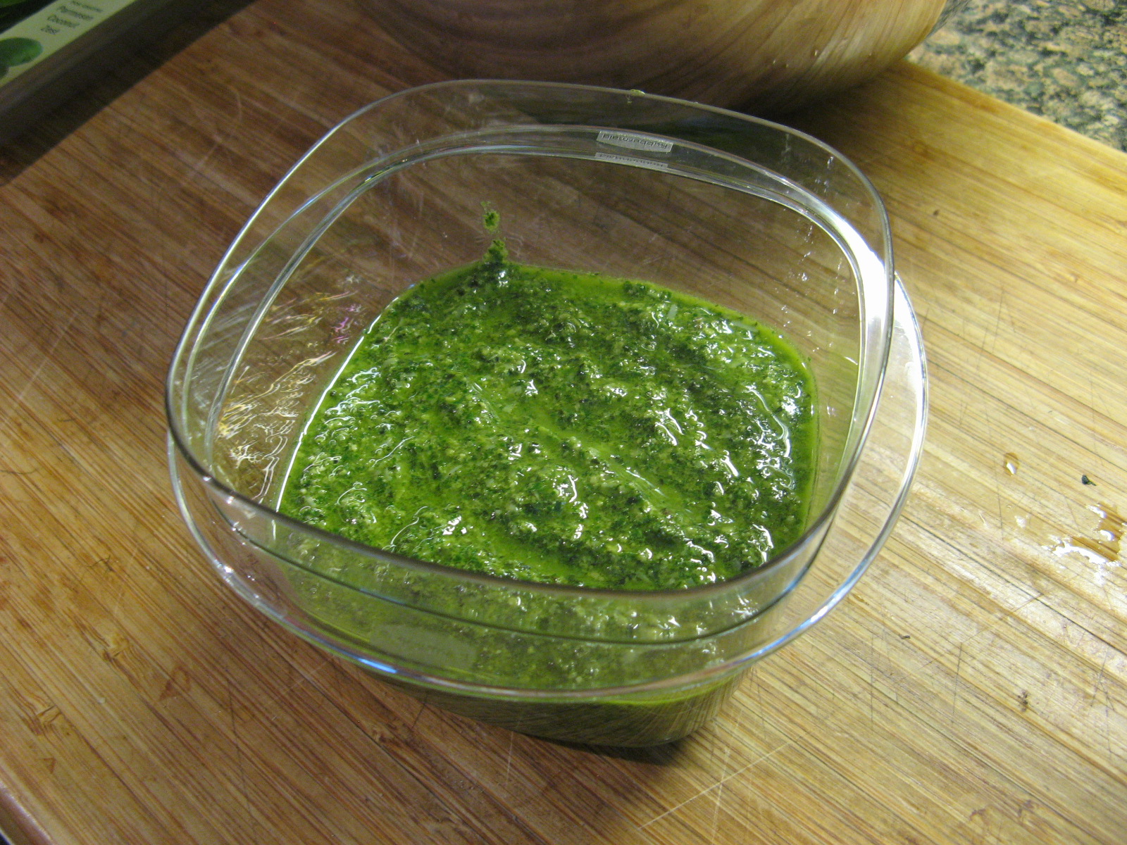 Since I wasn’t using the Pesto Sauce immediately I stored it in an airtight container in my refrigerator. After being in the fridge for a few days I added a little more olive oil to the top of it to make sure it would stay fresh. And when I was ready to use it was perfect.