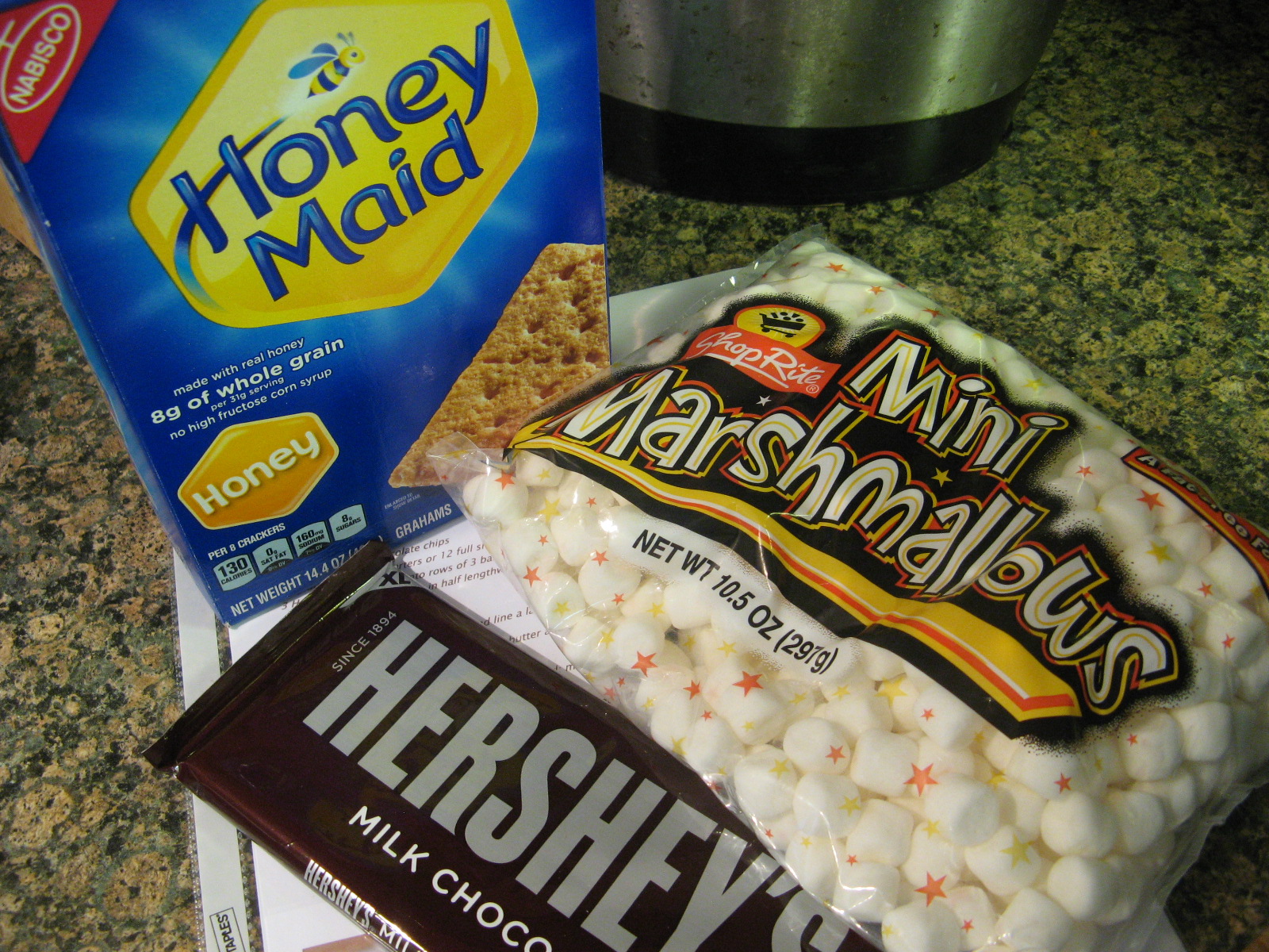 I then gathered my three ingredients to make s’mores – graham crackers, chocolate and marshmallows.