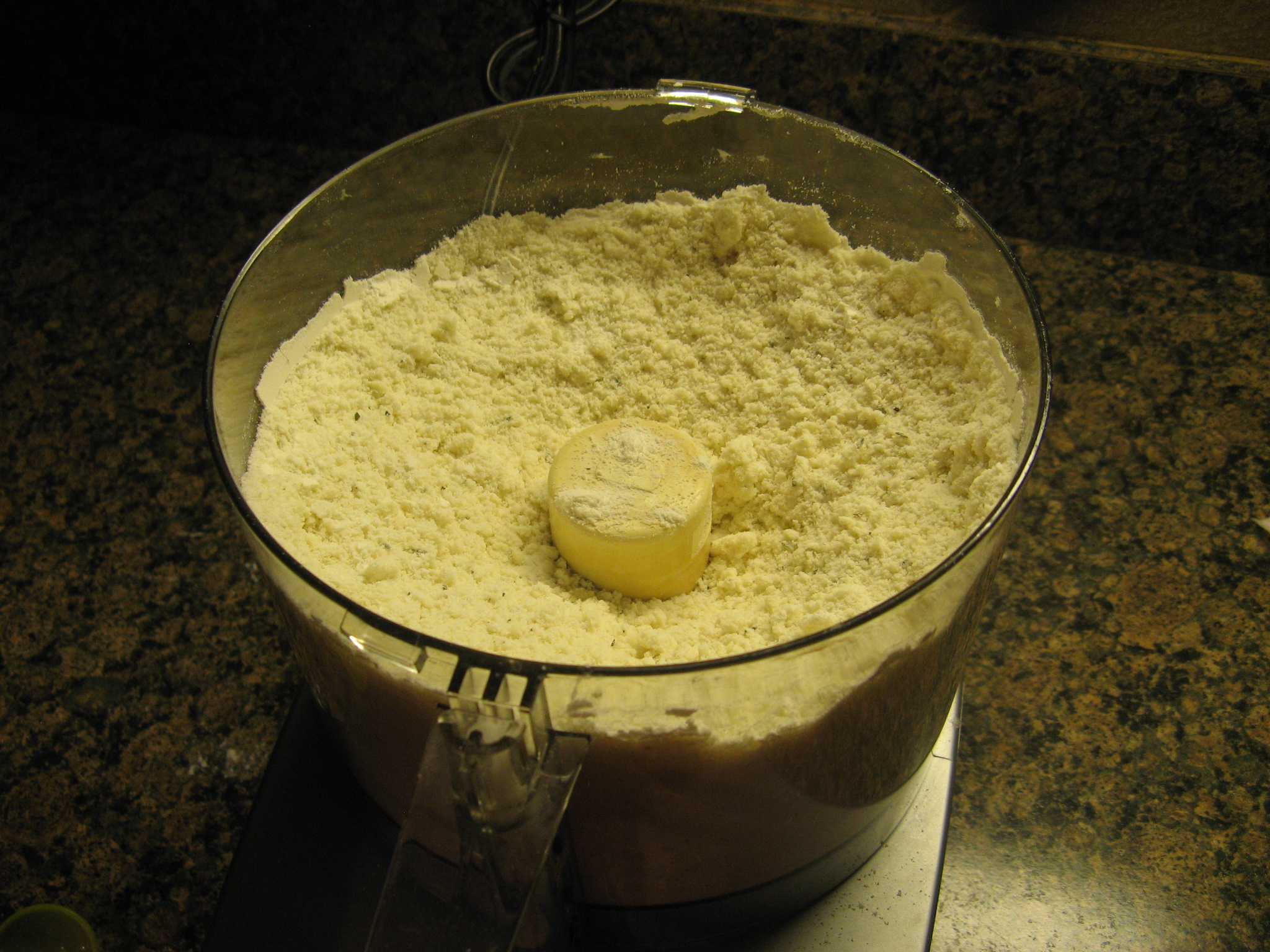 After I pulsed it until it was just combined I added in 12 tablespoons of cold butter cut into small pieces and pulsed the mixture until it looked like coarse meal.