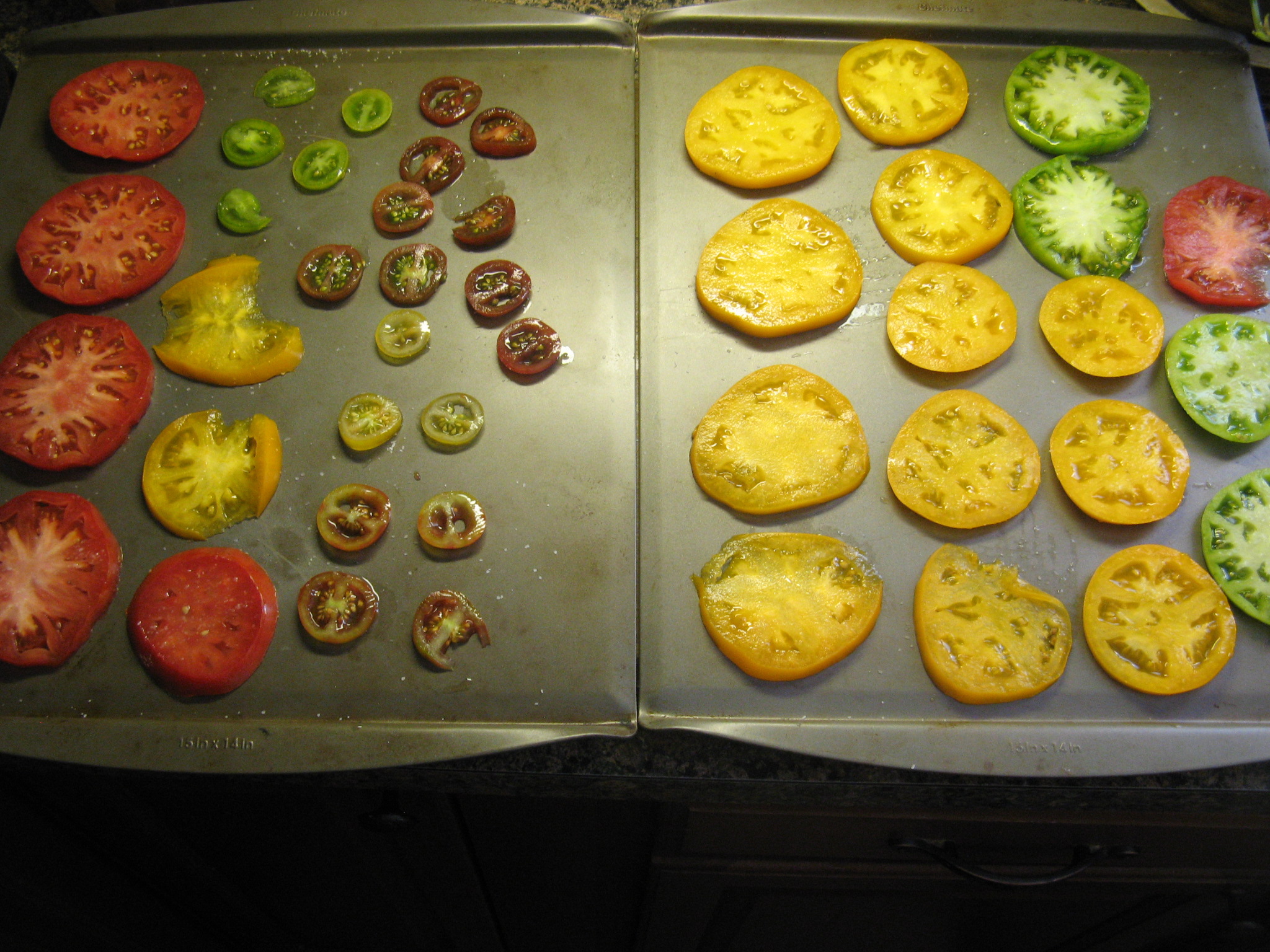 The following day, while the crust was still in the refrigerator, I prepped the heirloom tomatoes by slicing them, spreading them on baking sheets and sprinkling them with kosher salt so they could release some of their juices.