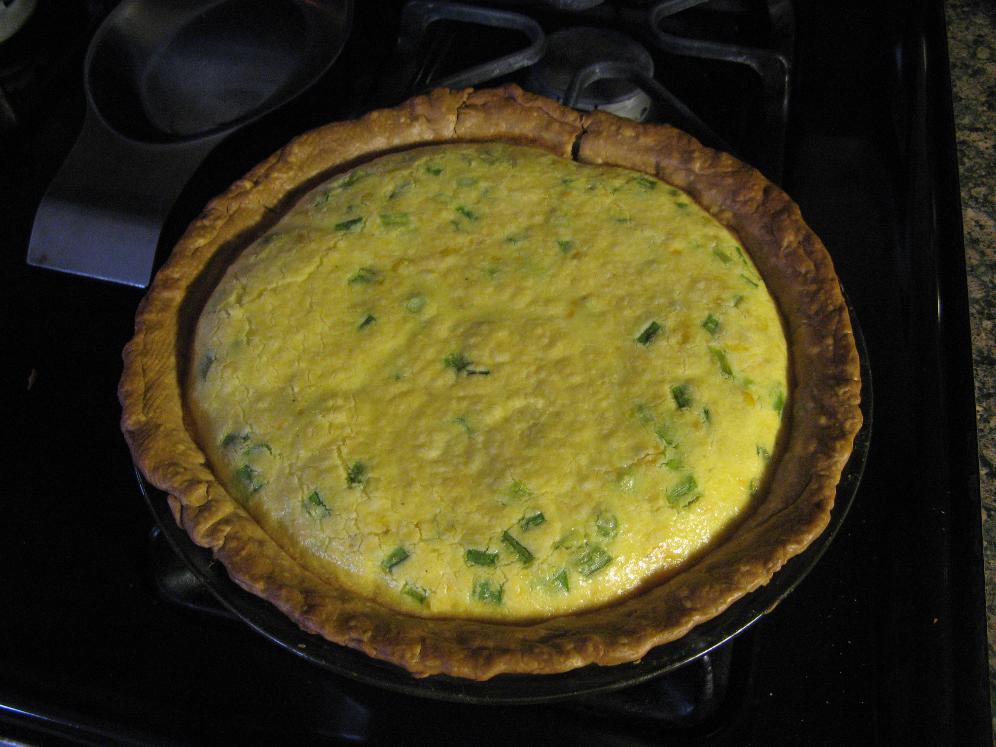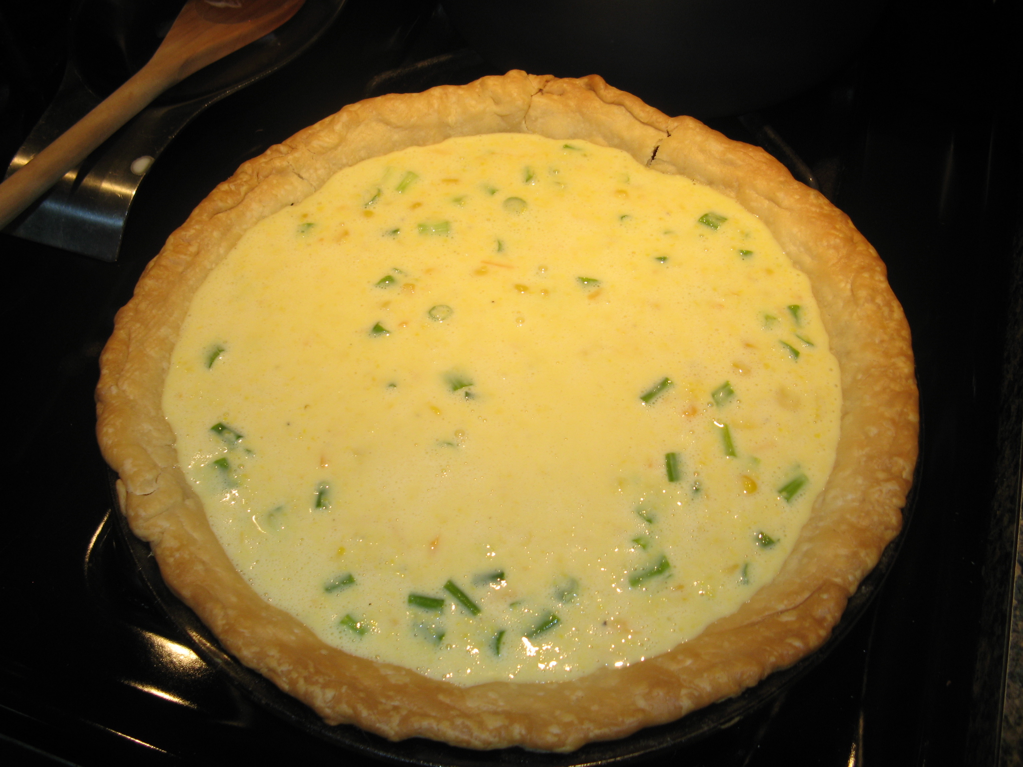 I poured this mixture into my cooked pie crust and placed it in a 350 F oven for 35 minutes until it was just set.