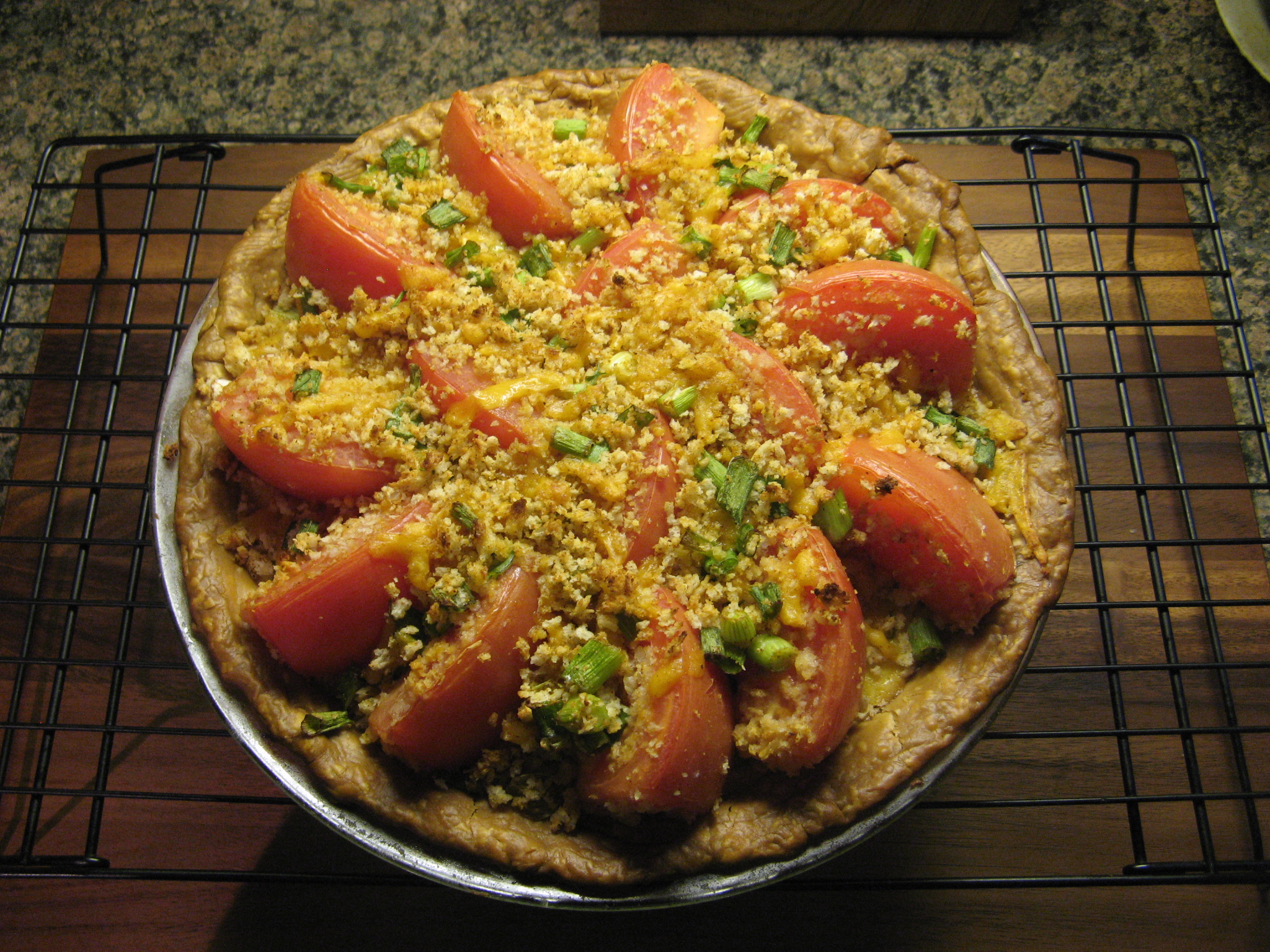 A few weeks ago I posted about a Tomato Fontina Torte with Rosemary Crust that was quite delicious. I got the recipe from a recent issue of Food Network Magazine, well, when I went to put the recipe back into my recipe binder (I’m one of those super-organized individuals) I noticed another recipe that I must have overlooked when I flipped through the magazine, a recipe for a Tomato and Corn Custard Pie that I knew I had to try and finally got around to it earlier this week. It ended up being the perfect combination of sweet and savory.