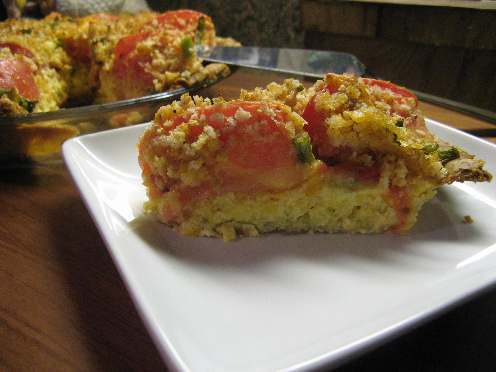 While the custard was cooking in the oven I mixed the remaining scallions and cheese along with panko breadcrumbs and seasoned it with paprika, salt and pepper.