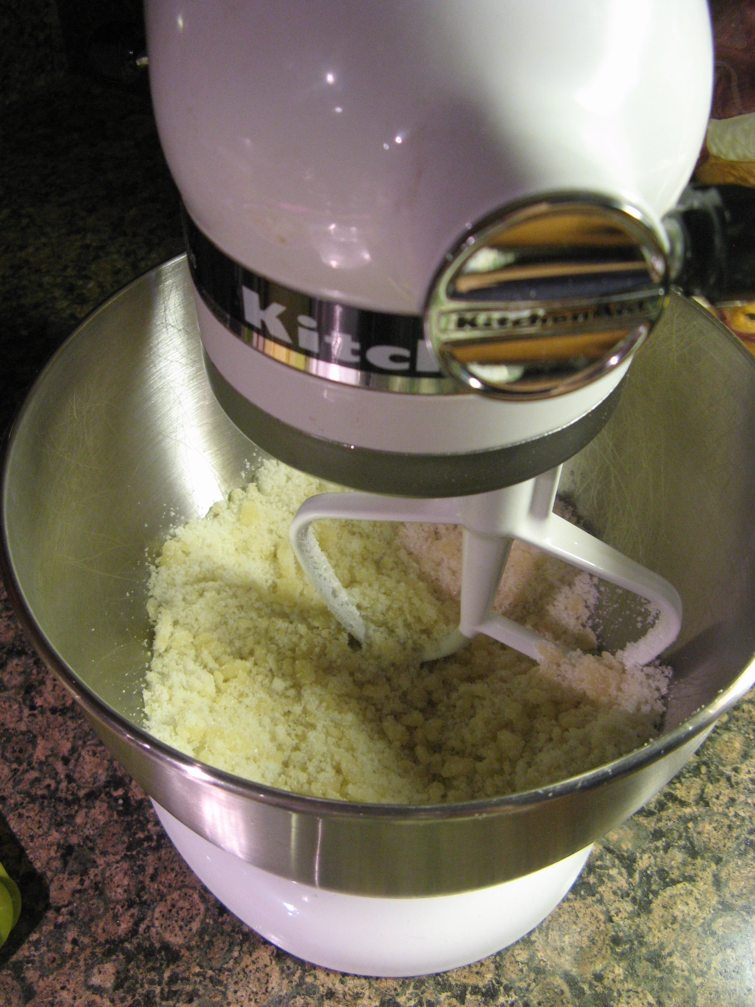 I began making the batter by mixing together almond paste and sugar until it formed into fine crumbles.