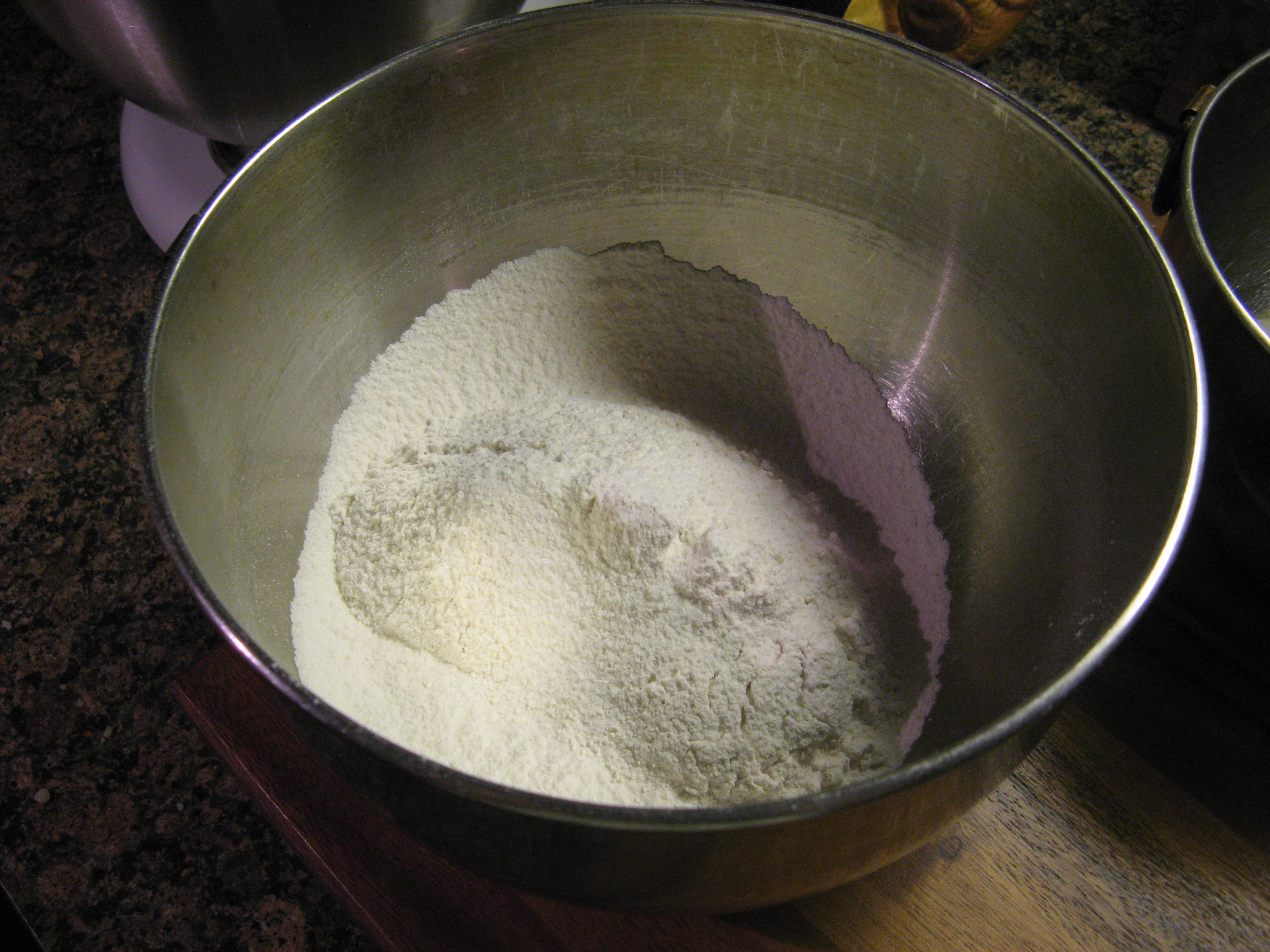 Sift 2 cups flour onto a sheet of parchment and sprinkle the salt on top; add to the mixer bowl and beat until just combined.