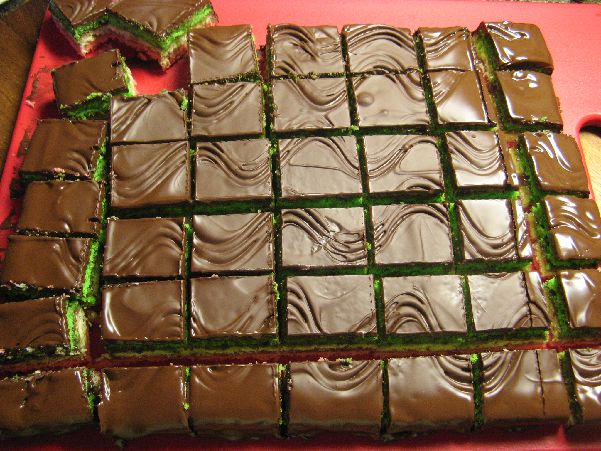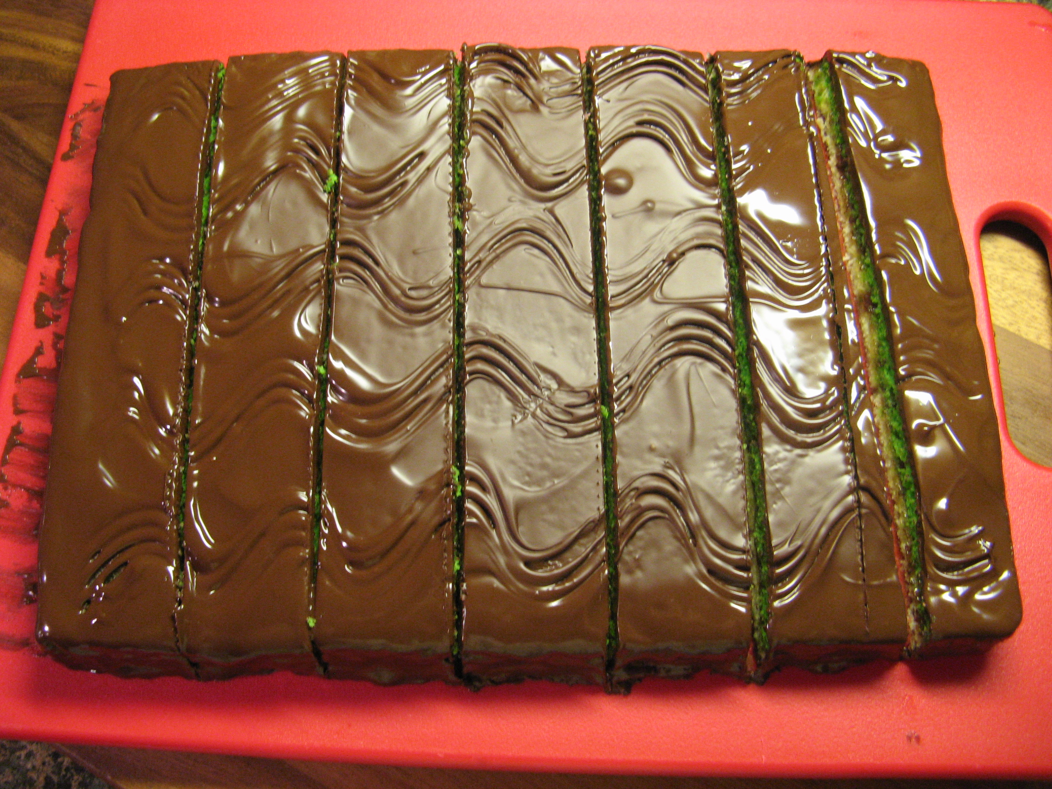 And finally once the chocolate had set a little more I cut the cake into cookies. First by making vertical cuts.